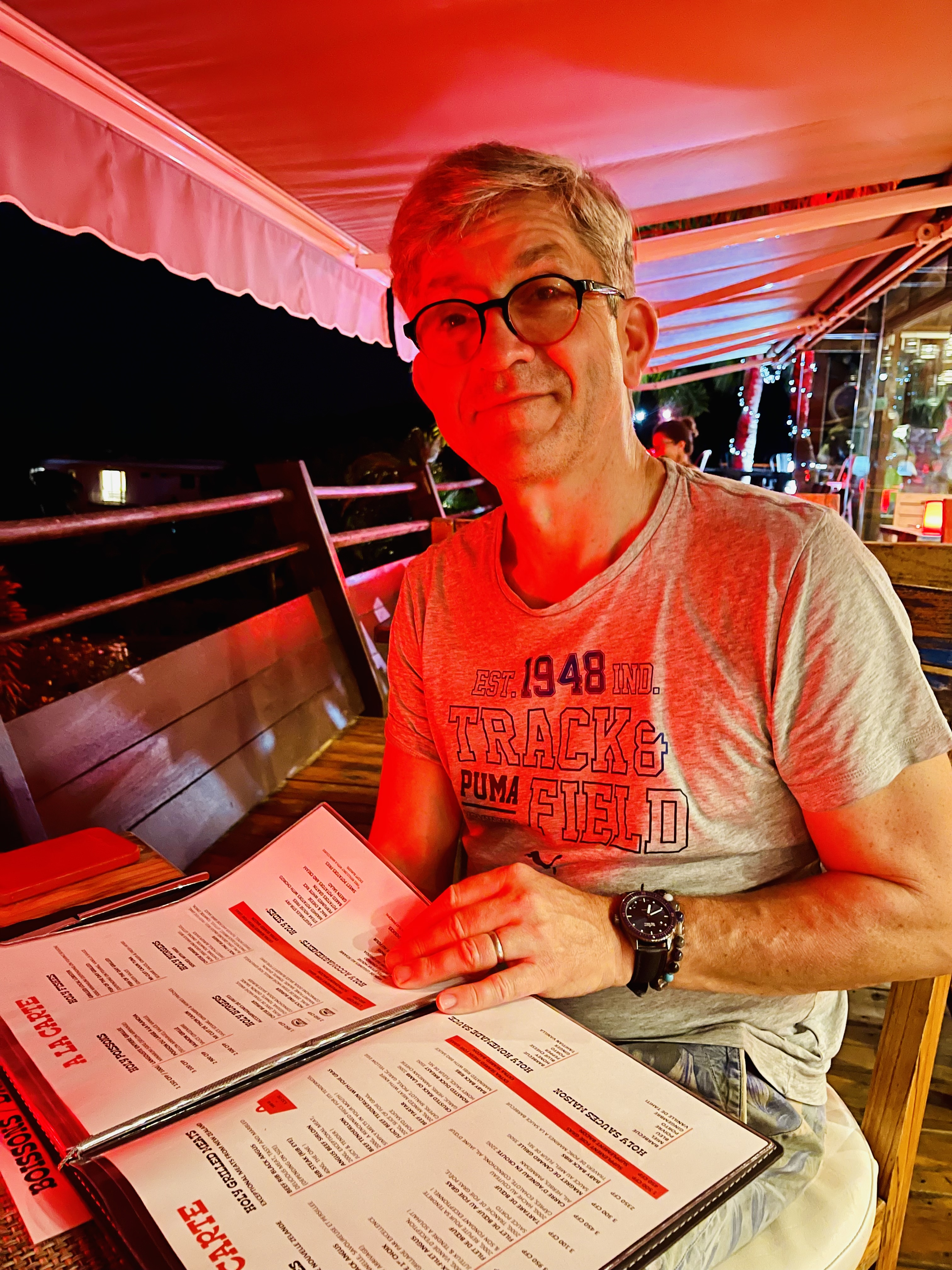 Massage au bord du lagon avant un dîner de bon heure puis dodo pour récupérer du décalage horaire.