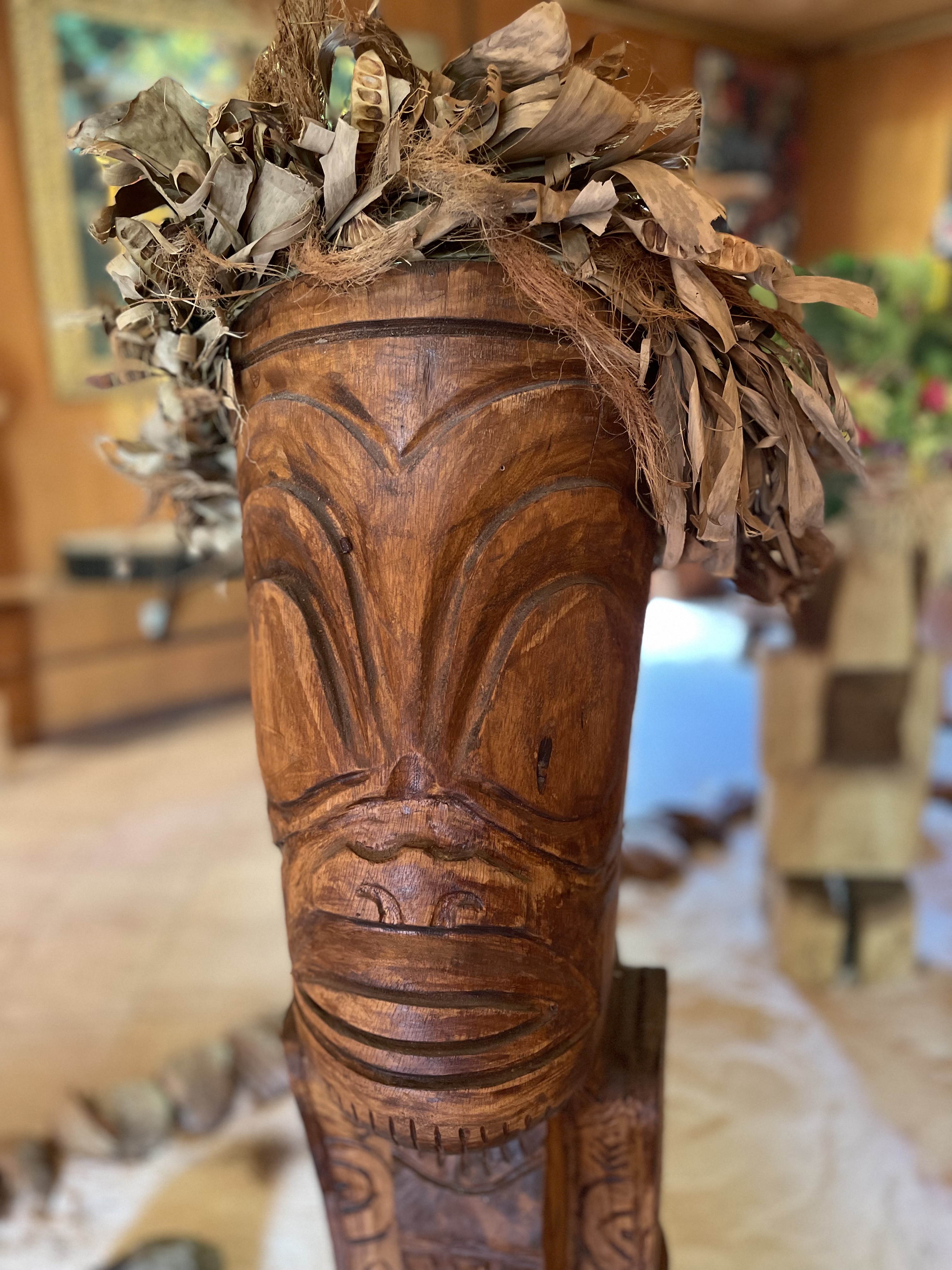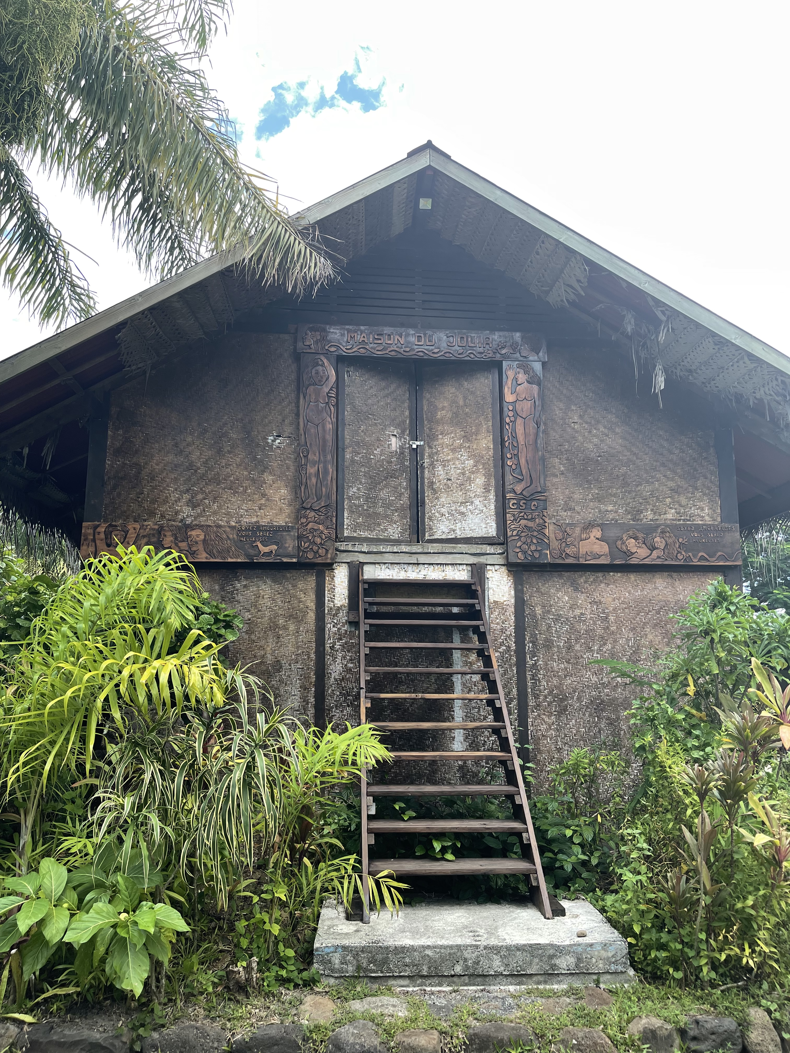Vous connaissez l’attachement de Gauguin, Brel et Brando pour ces îles? Nous avons pu en lire l’histoire et voir une reproduction de la maison de Gauguin (pour ceux qui savent zoomer, bien regarder l’inscription au-dessus de la porte 🤭) au Tiki village où nous reviendrons ce soir…