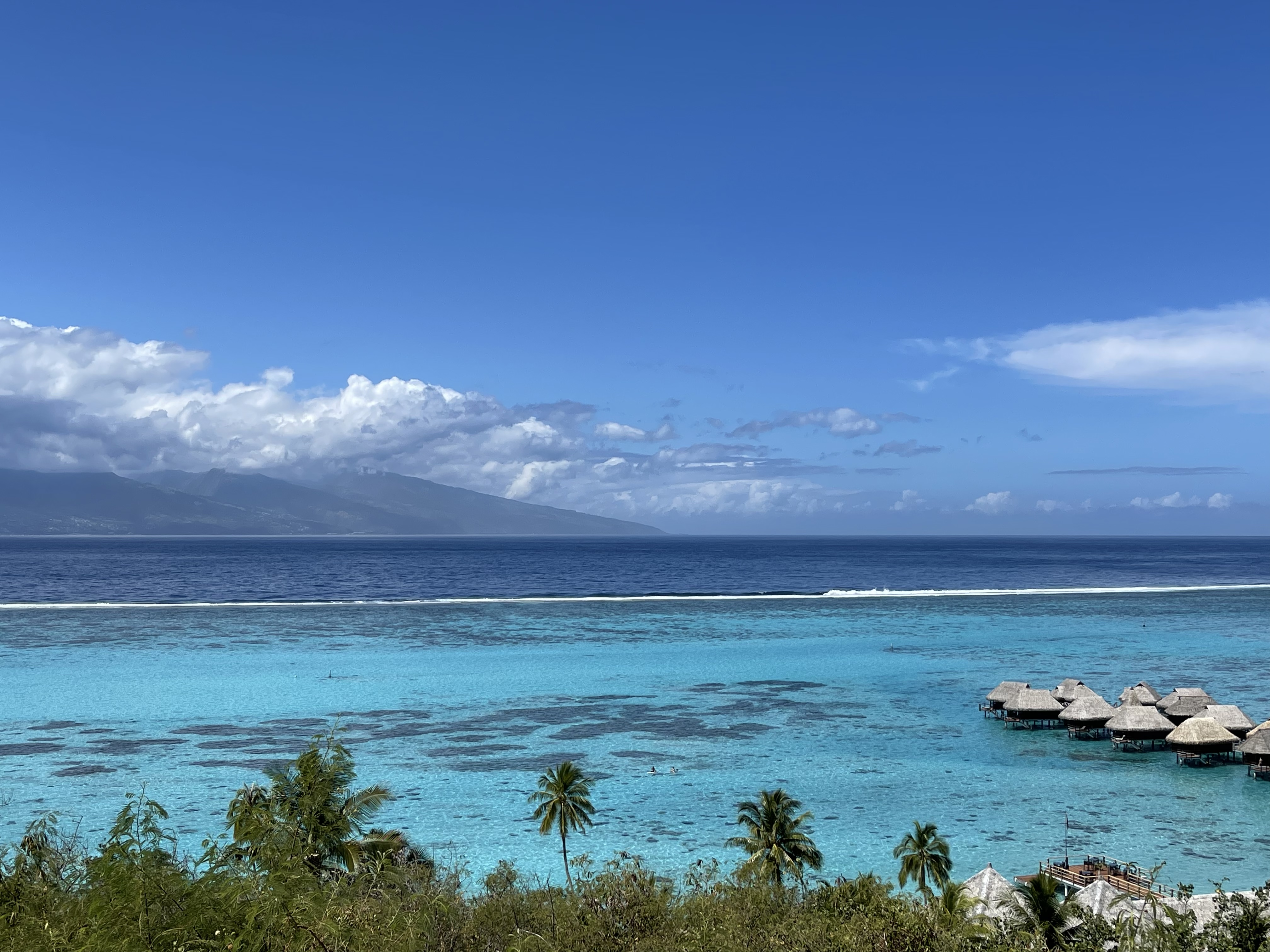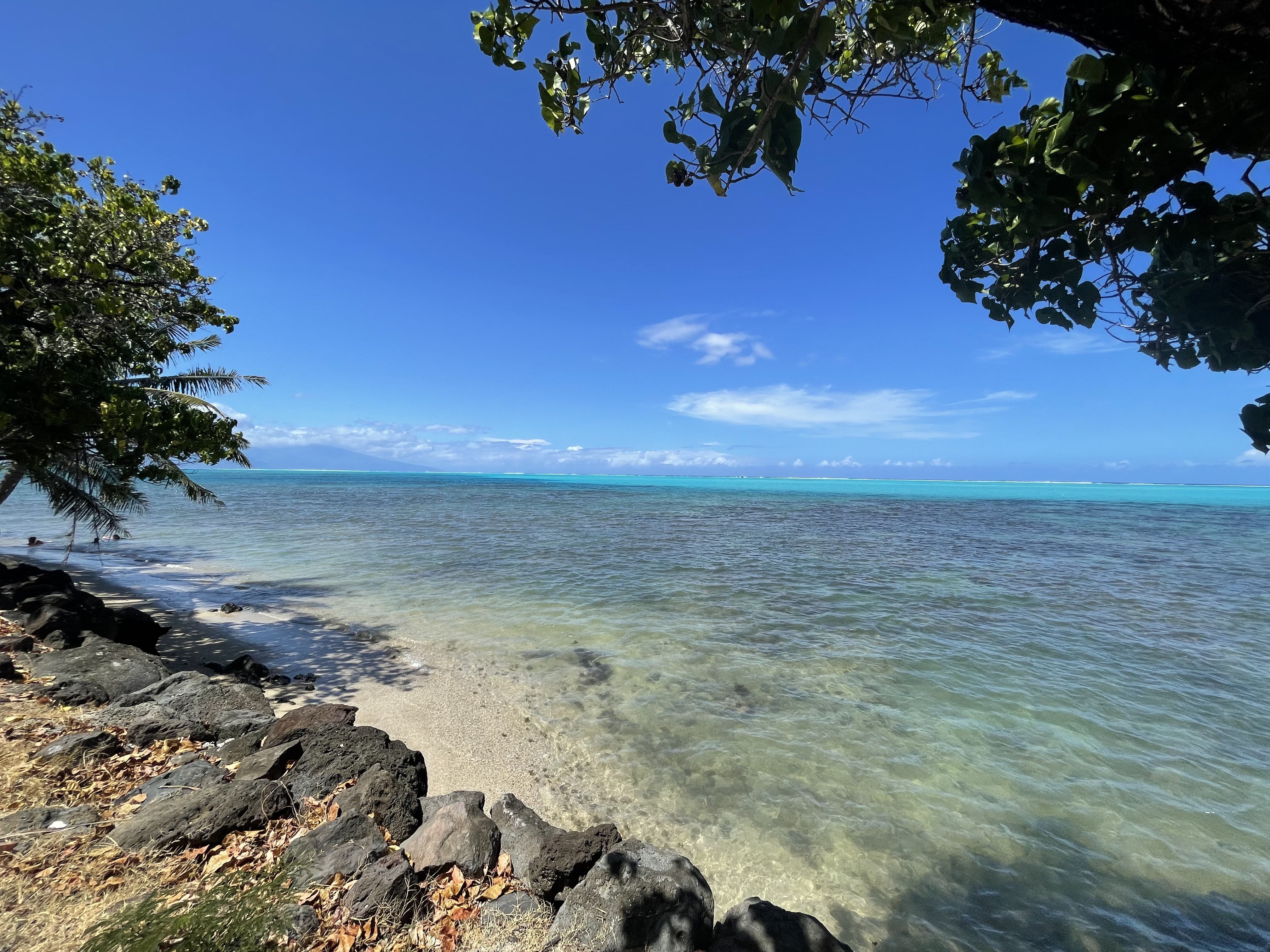 Moorea est une île presque ronde de +- 60km de circonférence, alors on a décidé d’en faire le tour. A peine partis, nous nous arrêtons pour découvrir le lagon de Taotéa. La route qui passe sur les hauteurs nous en offre une vue panoramique avec en arrière plan, l’île de Tahiti et son volcan. Nous continuerons ensuite vers le sud, nettement moins touristique.