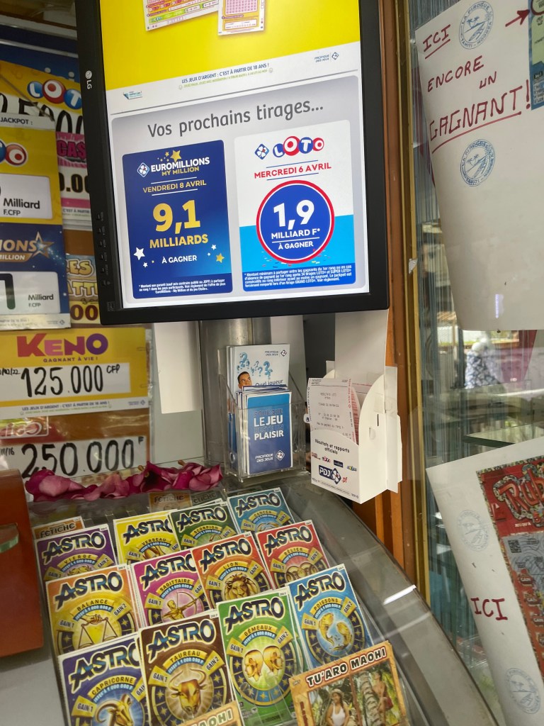 Sur la route du retour, on s’arrête pour acheter de l’eau. Christian en profite pour jouer à l’Euromillions. Plus de 9 milliards à gagner… la preuve en image!