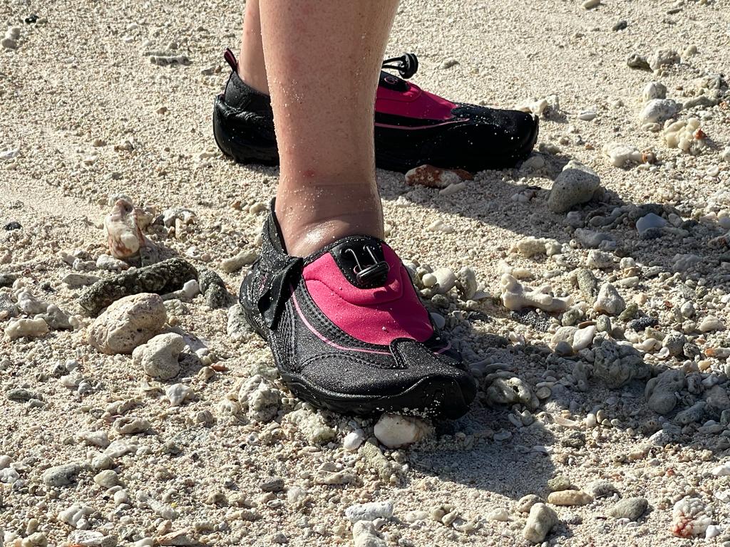 Aujourd’hui du changement à notre routine matinale. On part marcher sur la plage au lever du soleil. Elle est déserte mis à part un couple et ses deux énormes chiens. Laurent, tu remarqueras mon judicieux investissement 😂