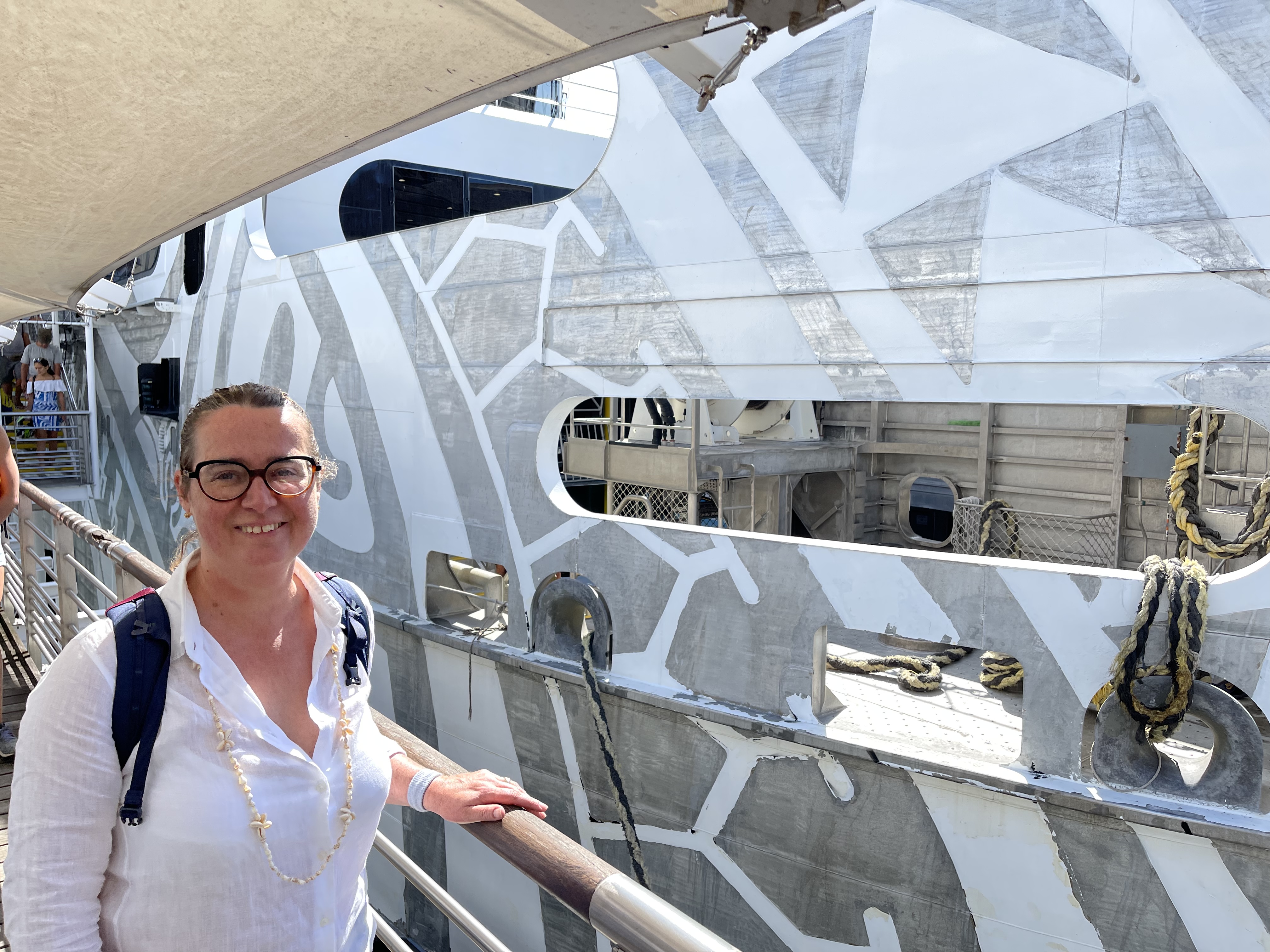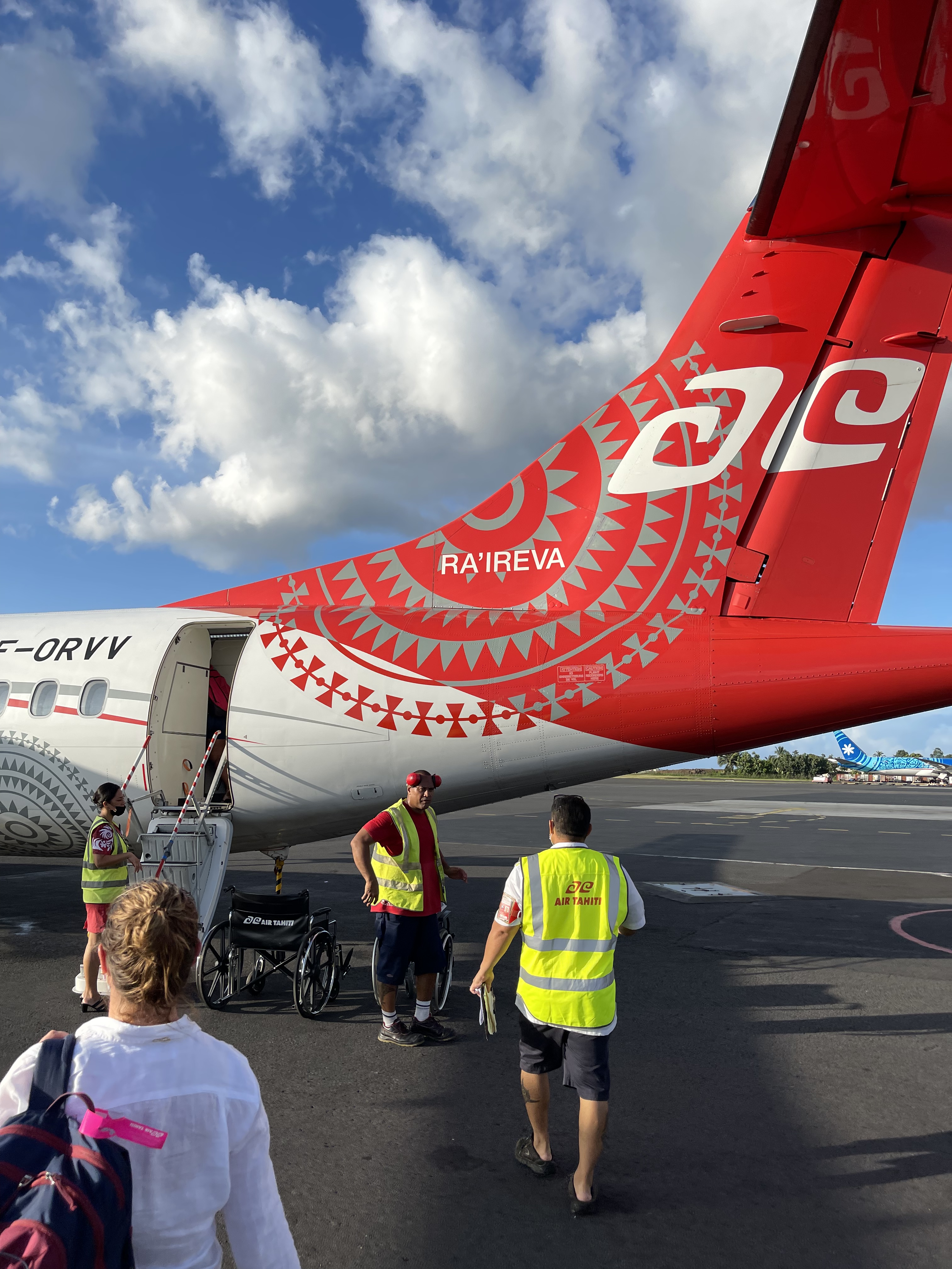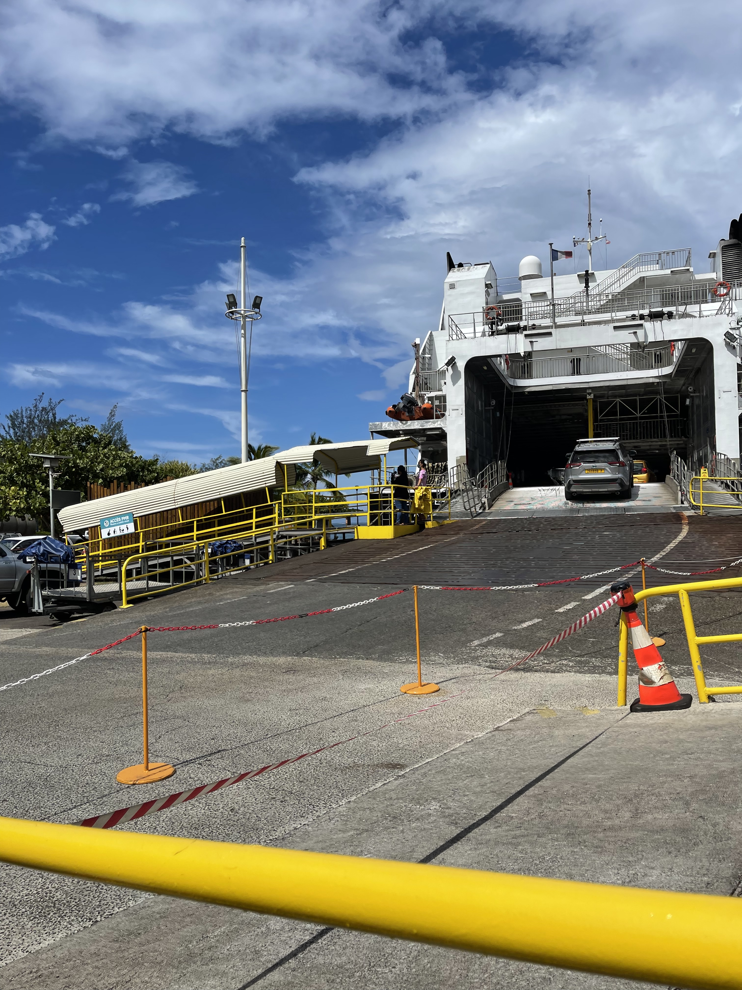 Sur le coup de 13 heures, en route vers le quai des ferries et direction de Papeete à bord de l’Aremiti 2 pour rejoindre l’avion qui nous emmènera vers notre nouvelle destination et surtout le catamaran. Coup de stress de mon côté, pas certaine que je vais aimer. Mais bon, on va commencer par tester…