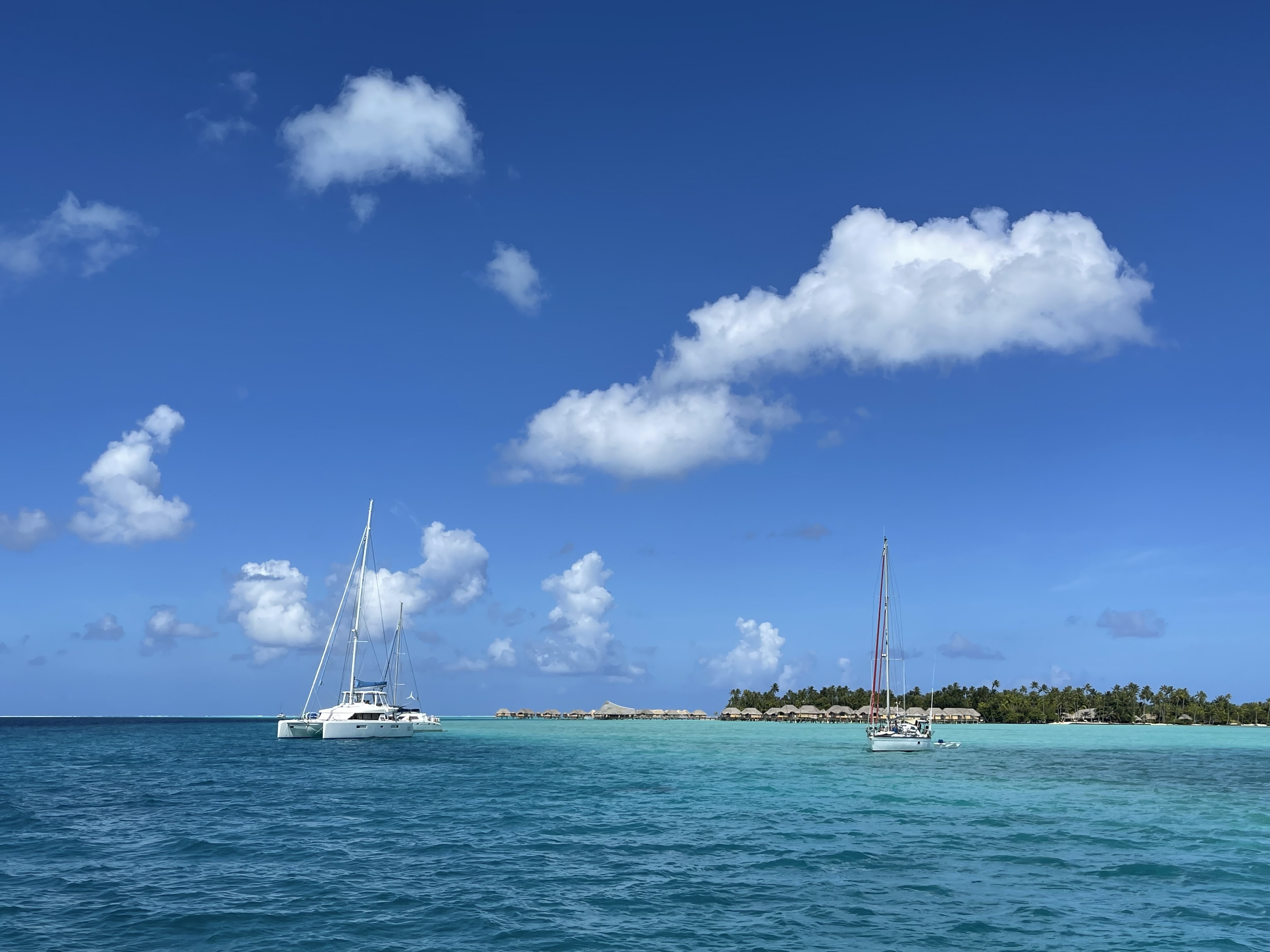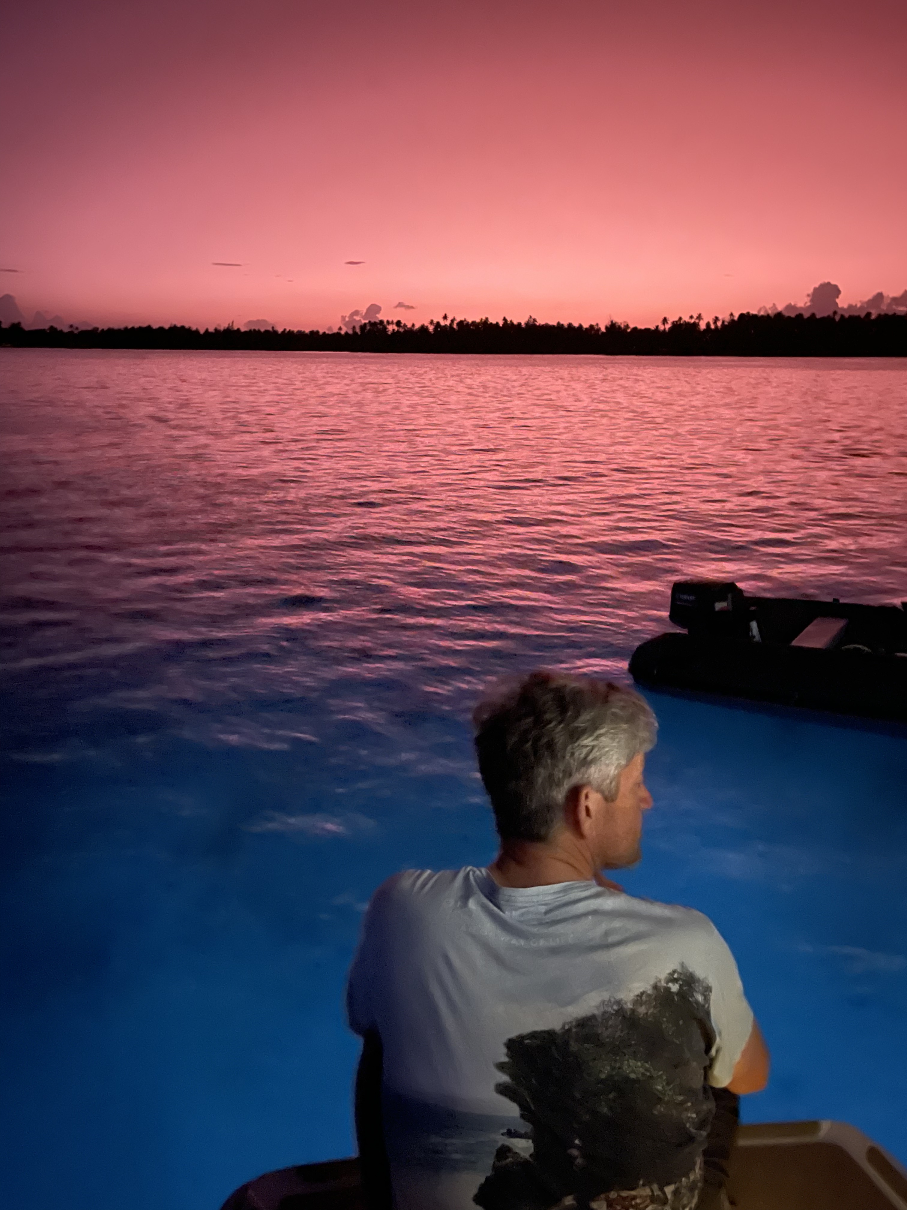 Et oui, une mauvaise nuit pour Christian et un gros dérangement intestinal nous oblige à une journée de pause dans la baie de Taha’a. Nous changeons d’amarrage pour nous retrouver devant une des plus beaux hotels de Polynésie. On profite tout de même d’un somptueux coucher de soleil. La journée passe et nous sommes prêts pour la visite de Taha’a, l’île vanille qui s’annonce pour le lendemain matin.