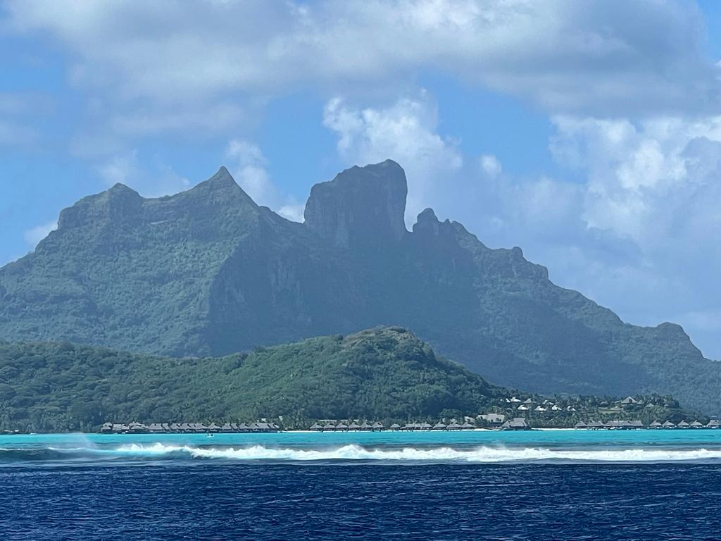 Bora Bora nous attend. On la voit depuis des jours qui se dessine à l’horizon, qui disparaît sous les nuages de pluie avant de réapparaître et de nous appeler. Alors cette fois c’est décidé, on y va! On a un super vent arrière et on traverse plus vite que prévu. L’apparition de la belle est supérieure aux attentes, un vert dense, une montagne sculptée recouverte de mousse et un lagon turquoise qui attire le monde entier depuis des dizaines d’années.