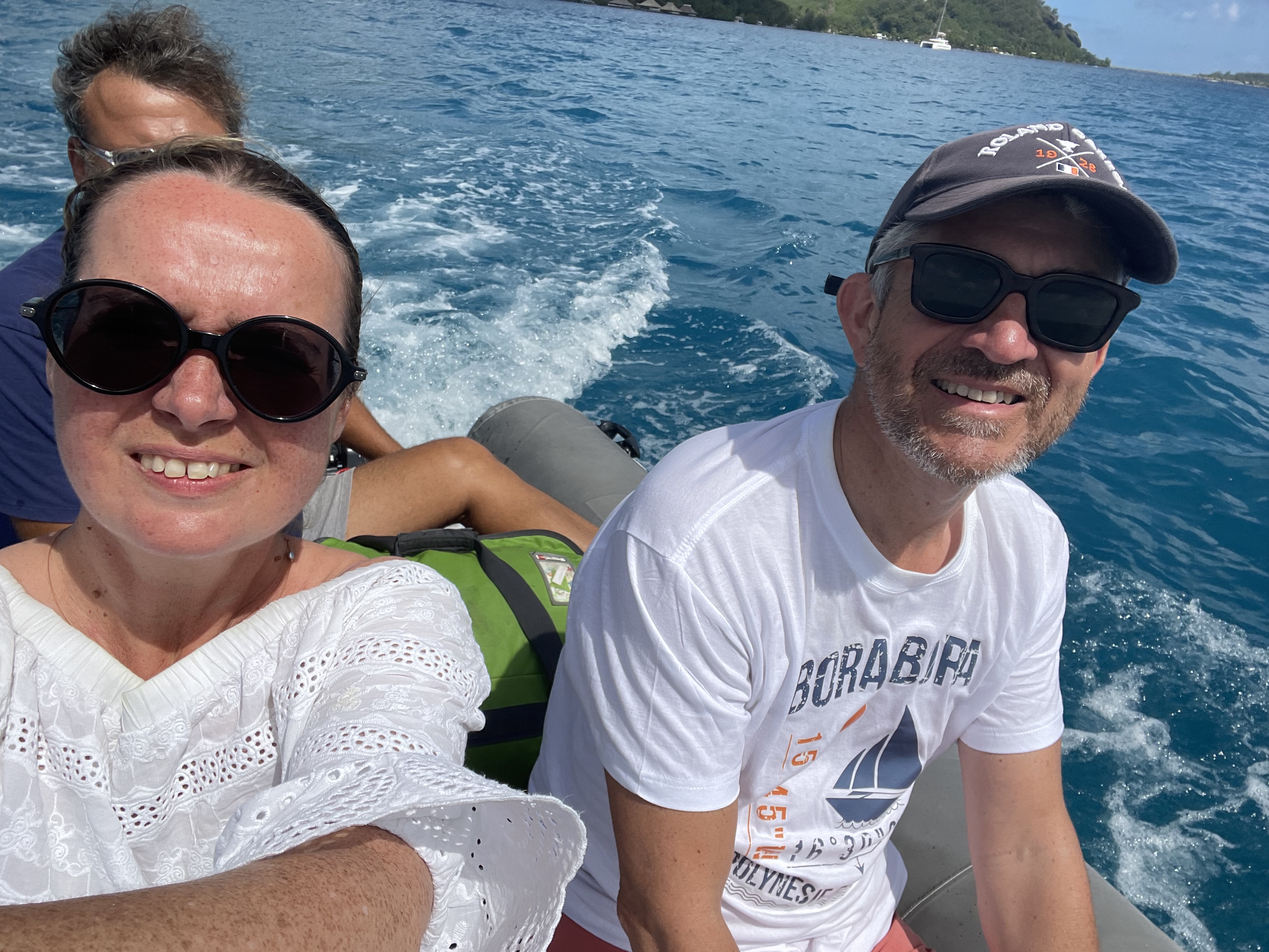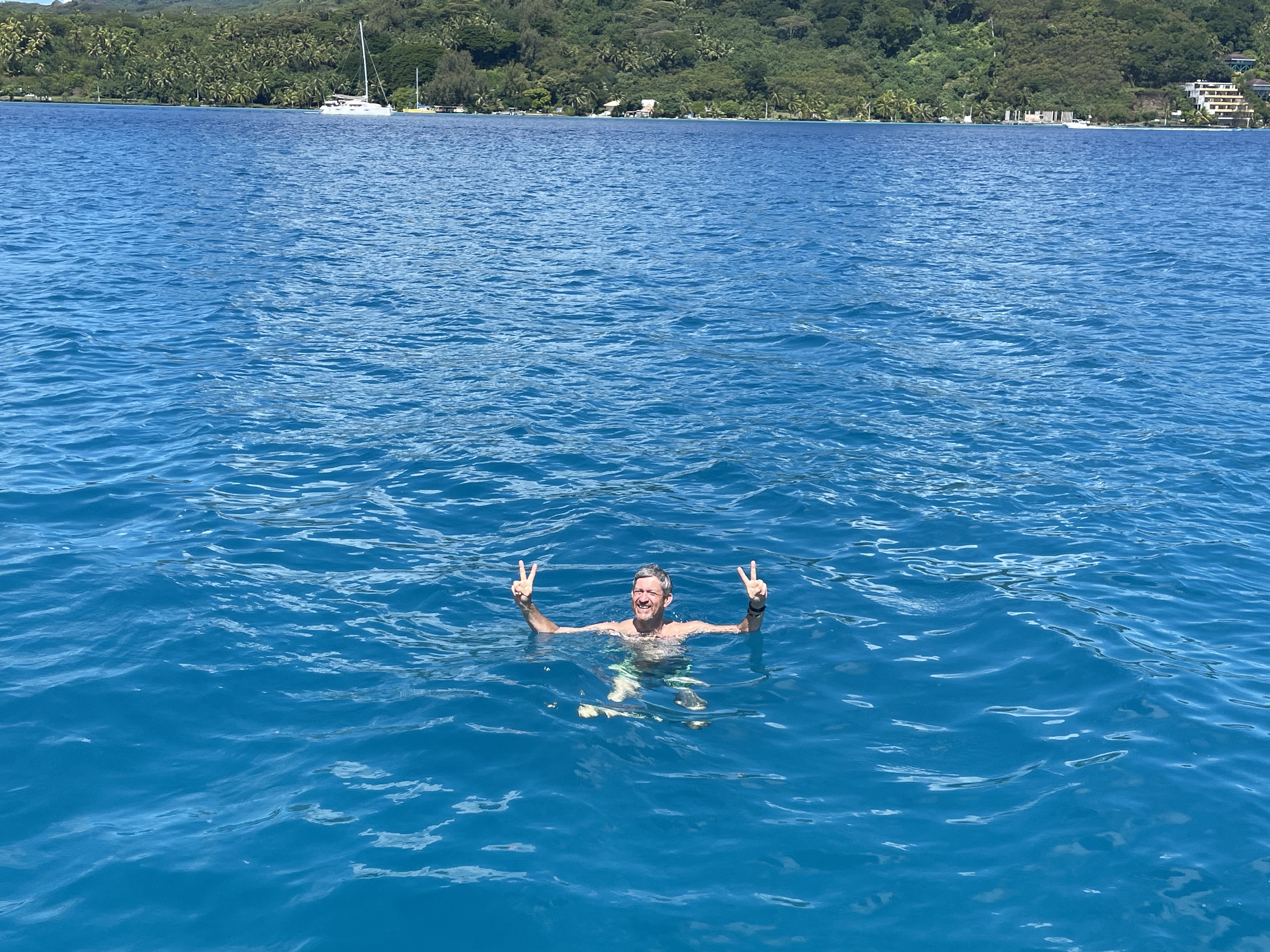 Voilà, après 11 jours sur le catamaran en compagnie de Françoise et Giorgi, nous allons regagner la terre ferme pour quelques temps. Aussi nous savourons encore davantage les derniers plongeons dans le lagon depuis le bateau.