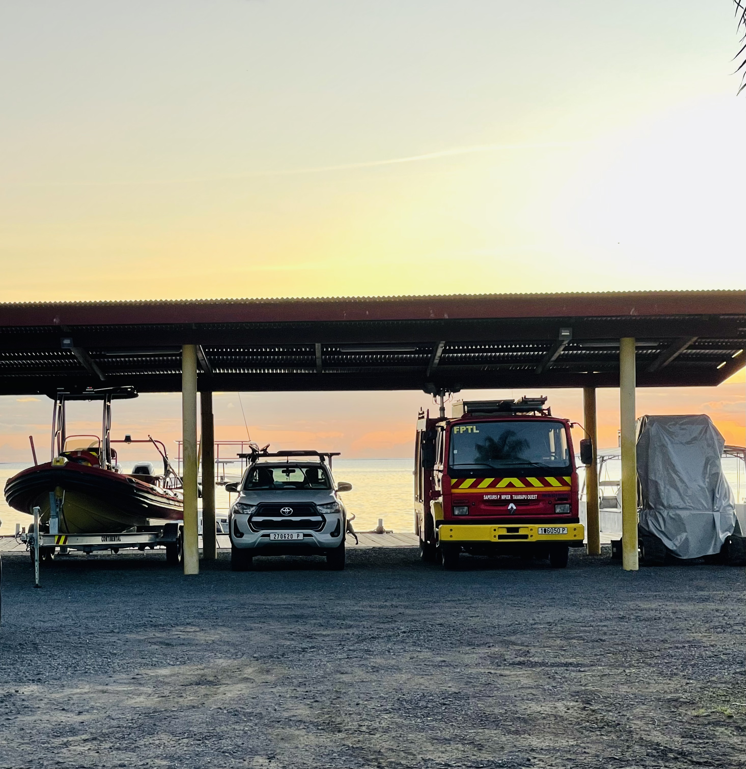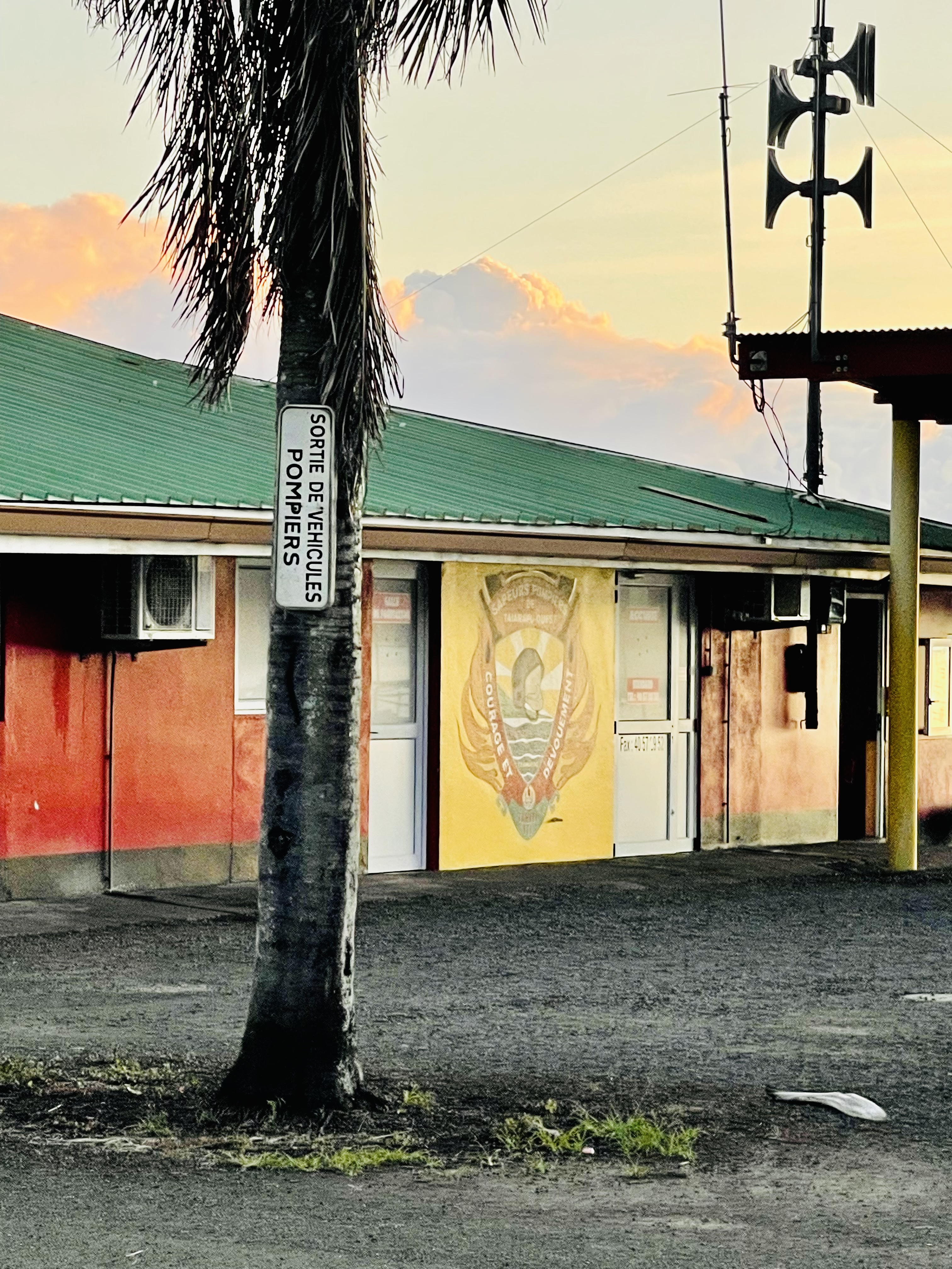 De retour au bungalow, il est déjà temps de refaire les valises. Ce soir nous regagnons Papeete car le vol pour Rangiroa part tôt et la route de la presqu’île est embouteillée dès 5 heures du matin. Une dernière fois, nous passons devant la caserne des pompiers et je ne peux résister à l’envie de la prendre en photo pour la partager avec vous.
