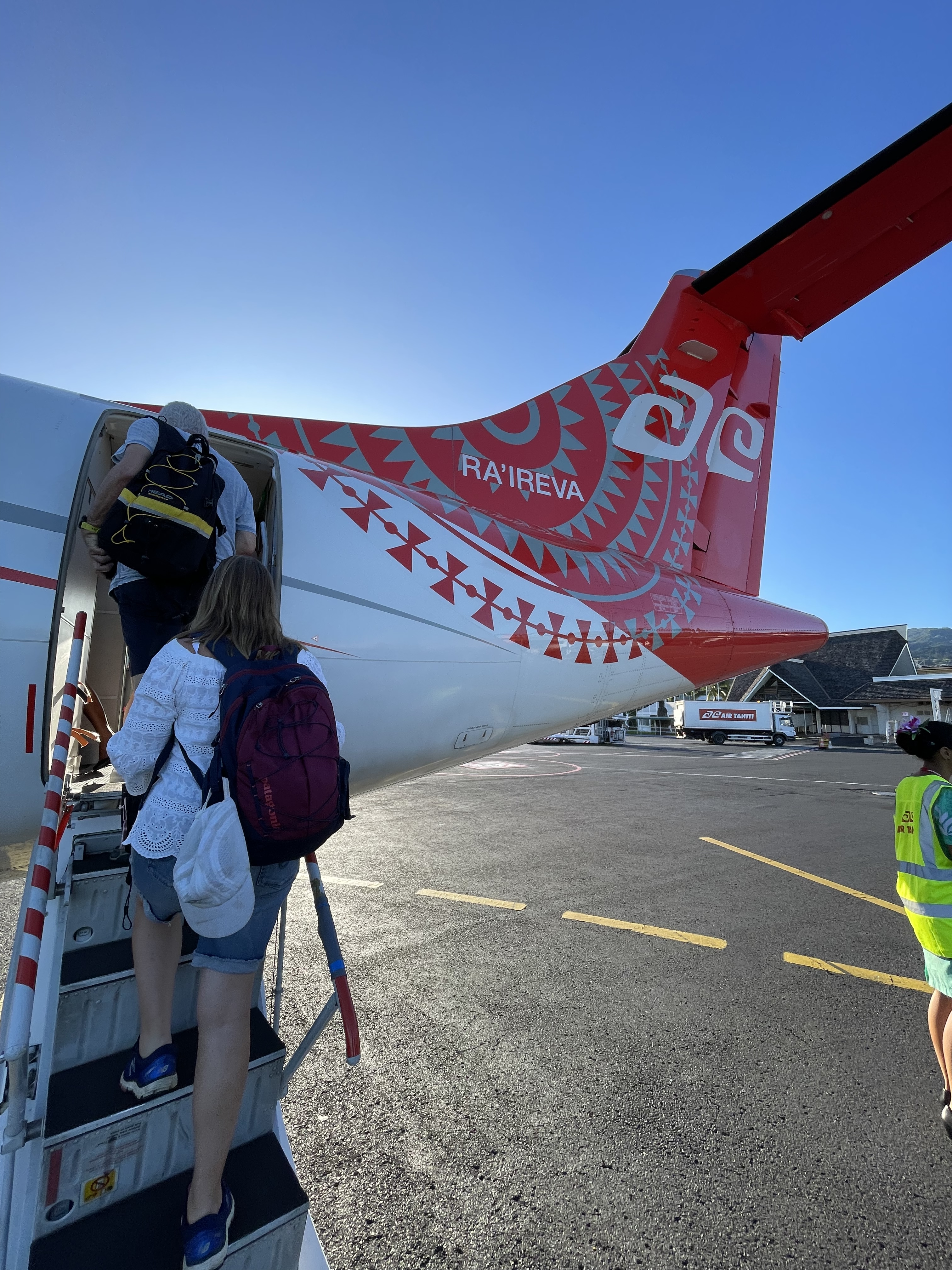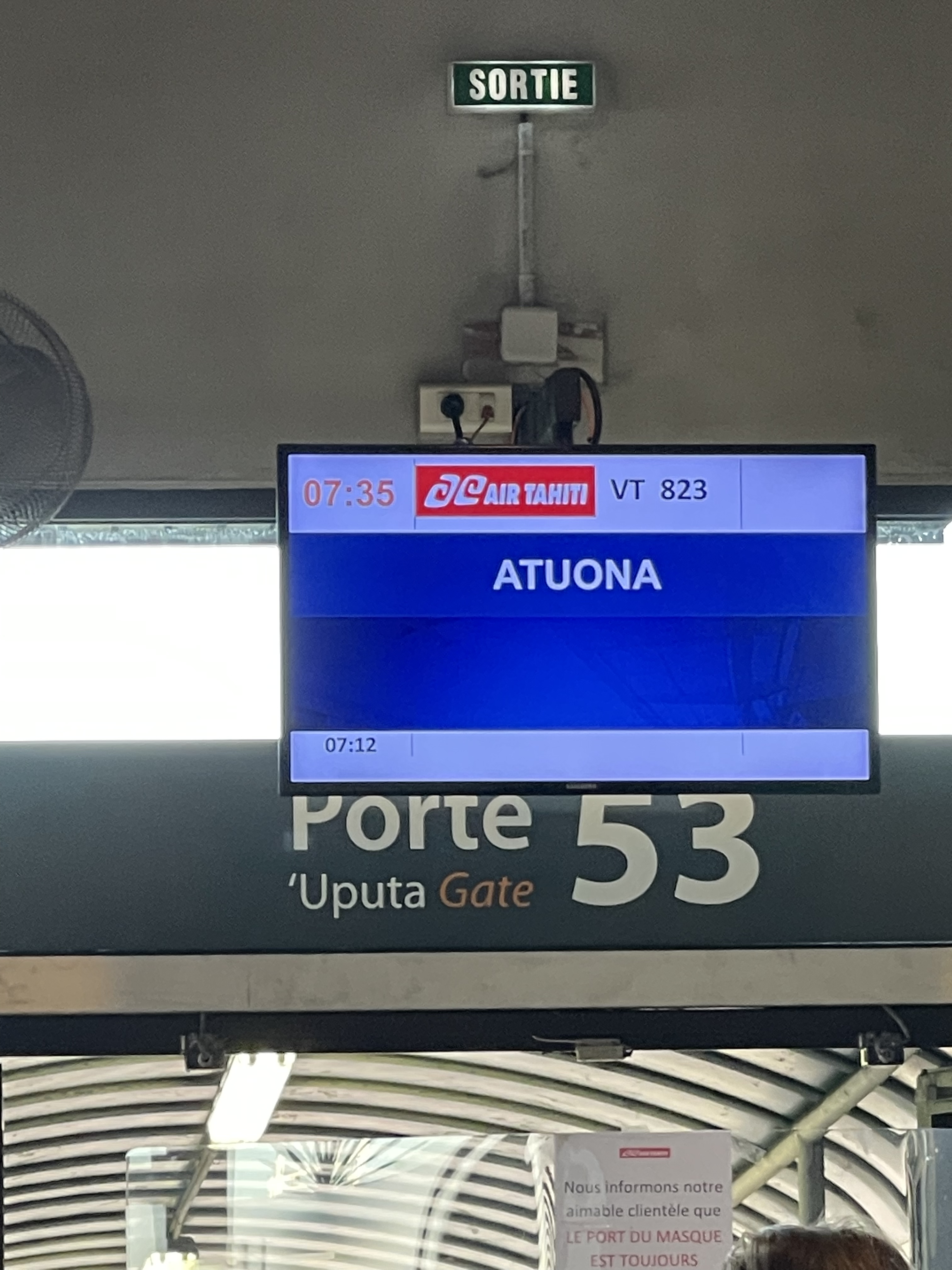 Après une escale à Nuku Hiva pour déposer des passagers et en reprendre d’autres, nous atterrissons à Atuona. Très vite, on trouvera Tania, venus nous récupérer à l’aéroport pour nous emmener chez elle où nous séjournons. On dépose rapidement nos affaires puis il est temps de déjeuner. La roulotte d’Iris en est déjà au 3ème service.