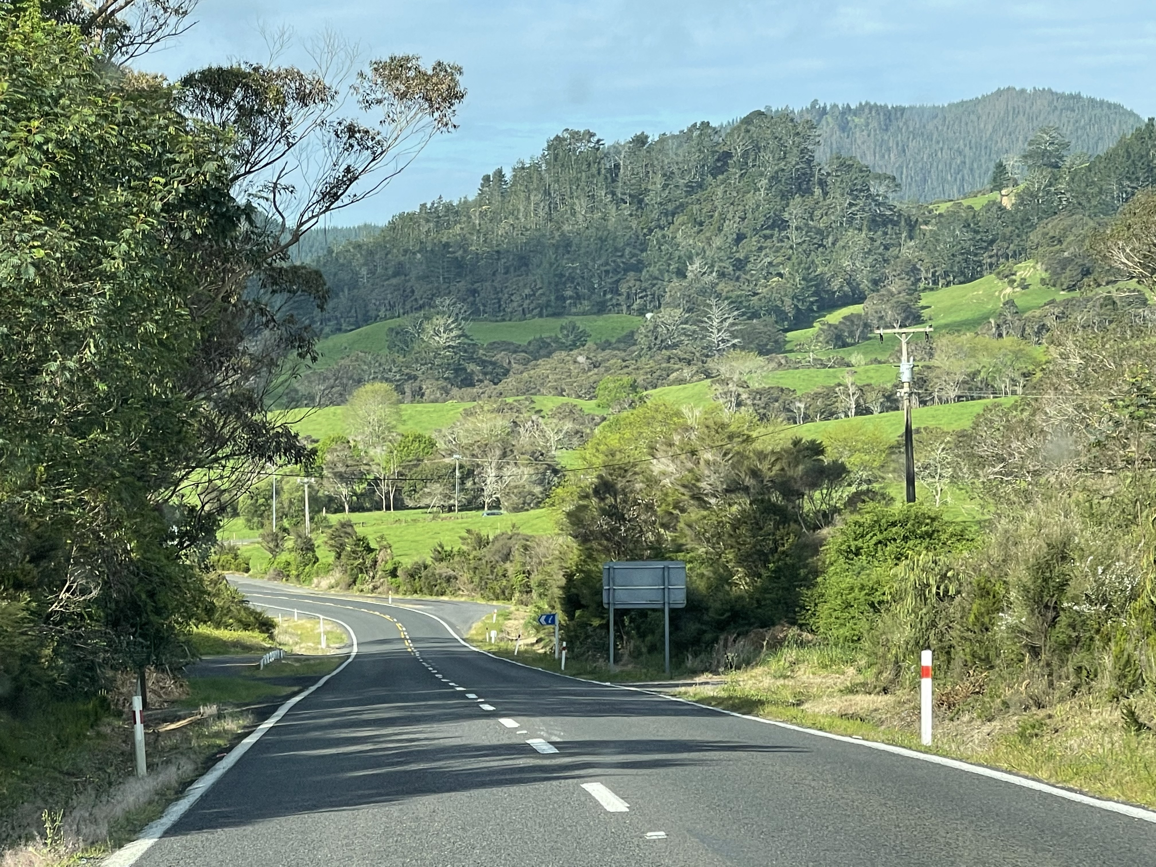 Journée de transition – 480km en 7h30 entre Hokianga Harbour dans le Northland et la péninsule de Coromandel au sud d’Auckland. L’occasion de traverser différents paysages qui nous rappellent d’une manière ou d’une autre, les endroits déjà vus en Europe mais aussi dans d’autres parties du monde. C’est ainsi qu’on évoquera ensemble le Bouthan, le Costa Rica, les Marquises… et même le Mont Saint Michel!