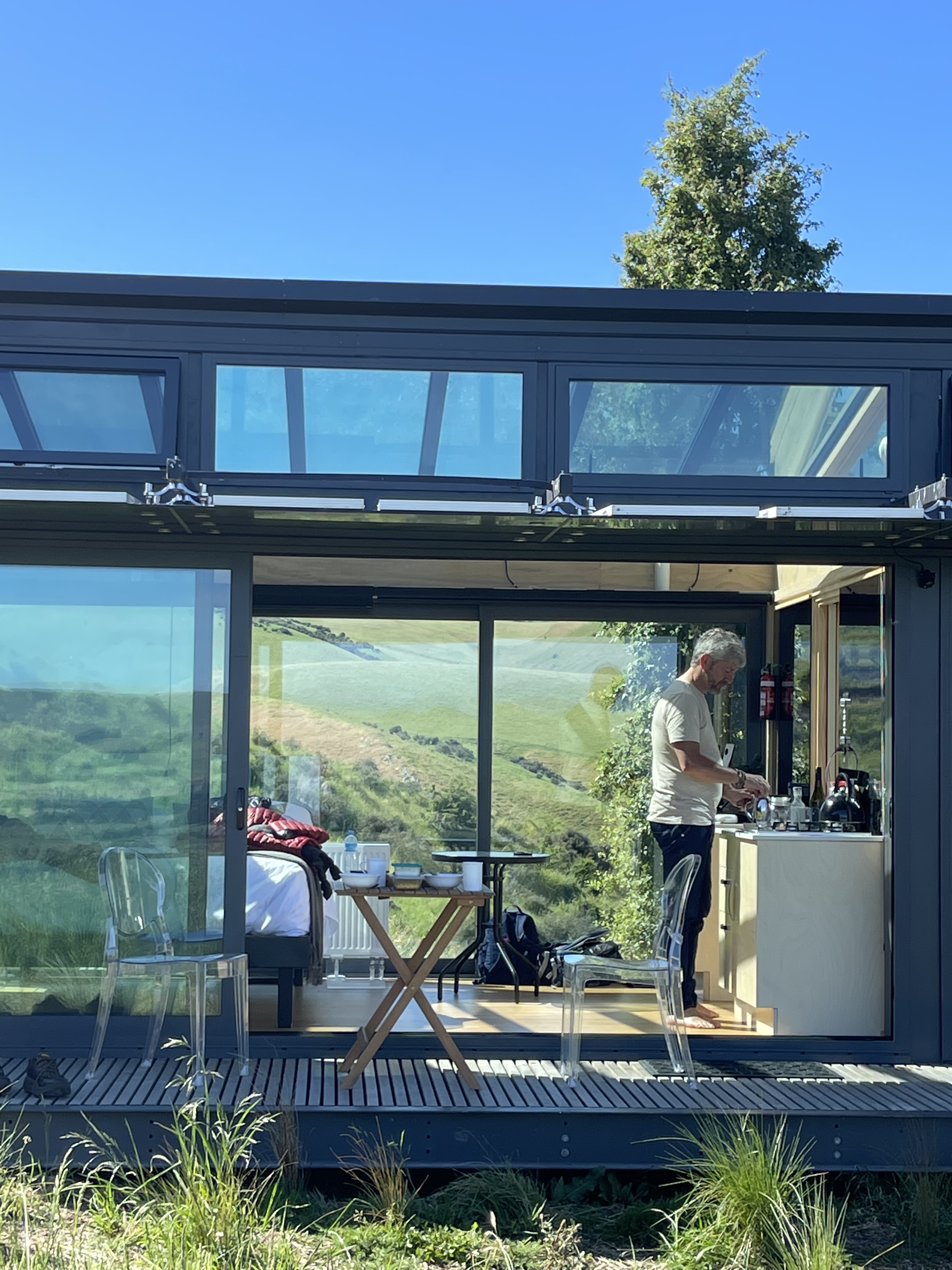 L’anniversaire de Christian tombant pendant notre voyage, j’ai voulu lui trouver un cadeau original. Alors que je préparais le voyage, j’ai découvert des hébergements tout en verre et offrant des vues incroyables. Il en restait un de disponible à la date voulue, en plus au milieu d’un vignoble…