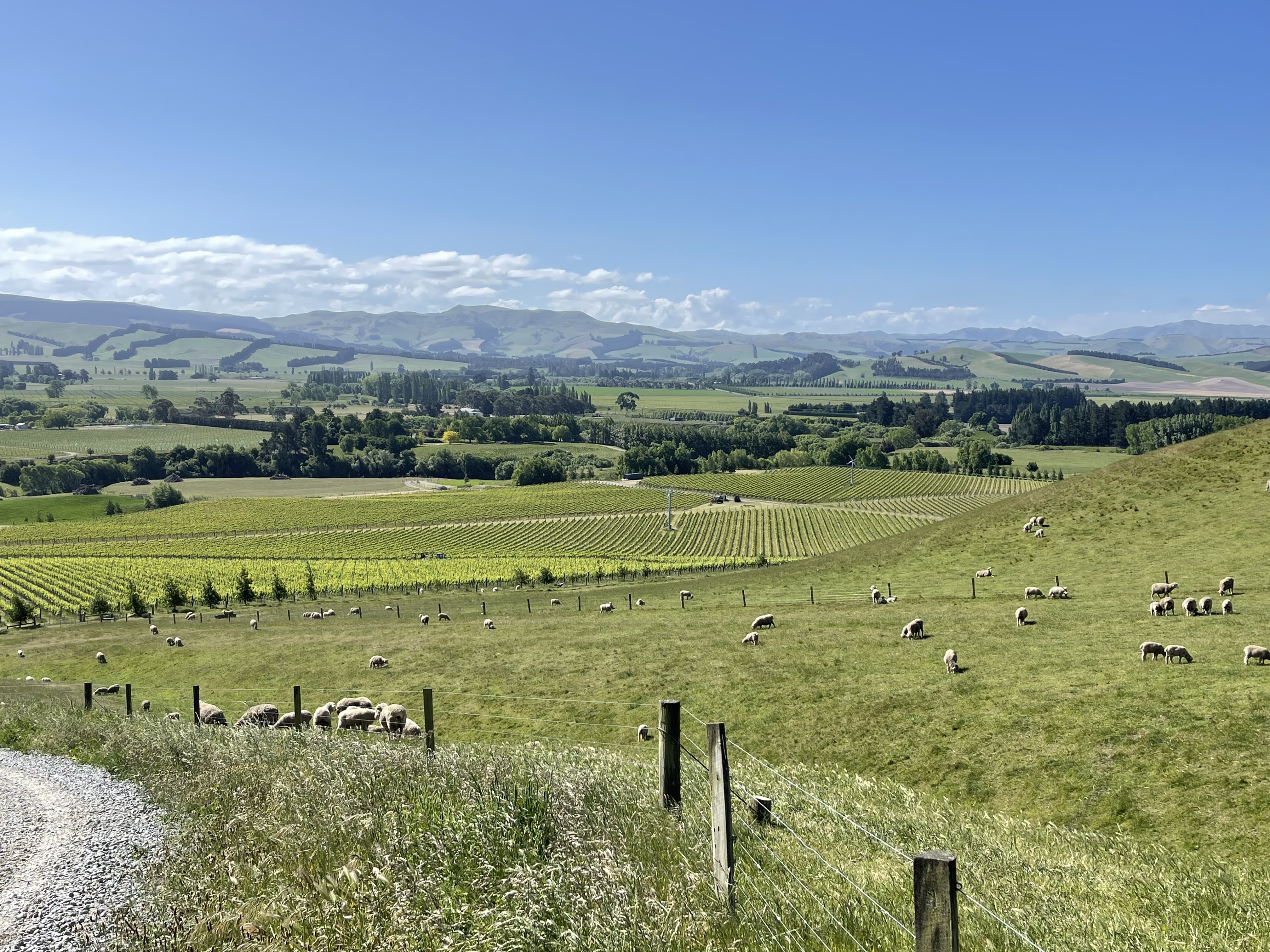 Nous trouvons facilement l’entrée du vignoble et suivons ensuite les instructions données. Rien de bien compliqué mais le chemin est parsemé de plusieurs barrières pour éviter aux moutons de quitter les pâtures; à nous de les ouvrir et de les fermer soigneusement derrière nous.