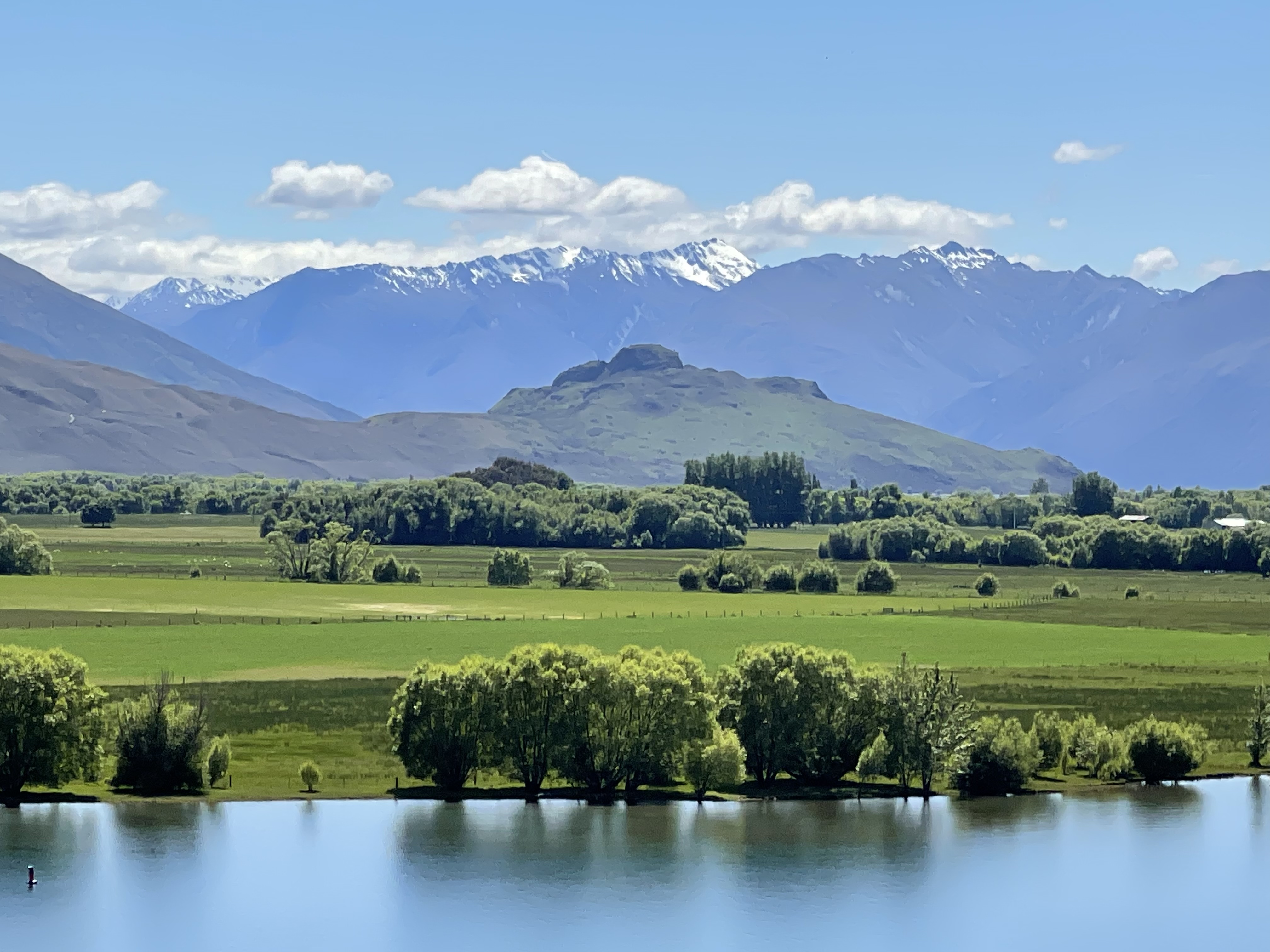 Nous avons choisi d’explorer la région du centre de l’Otago depuis Mount Pisa. L’endroit est très calme et idéalement situé pour rejoindre les différents points d’intérêts de la région. Après notre longue journée de route, nous sommes attendus par Sandy, notre hôtesse, et ses chiens. C’est avec bonheur que nous nous plongeons dans un bain chaud avant de déguster un bon barbecue. Vue sur le lac en contrebas, les vignobles, les fruitiers (dommage on était là juste un peu trop tôt pour pouvoir goûter les cerises) et les montagnes dont certains sommets sont encore enneigés.