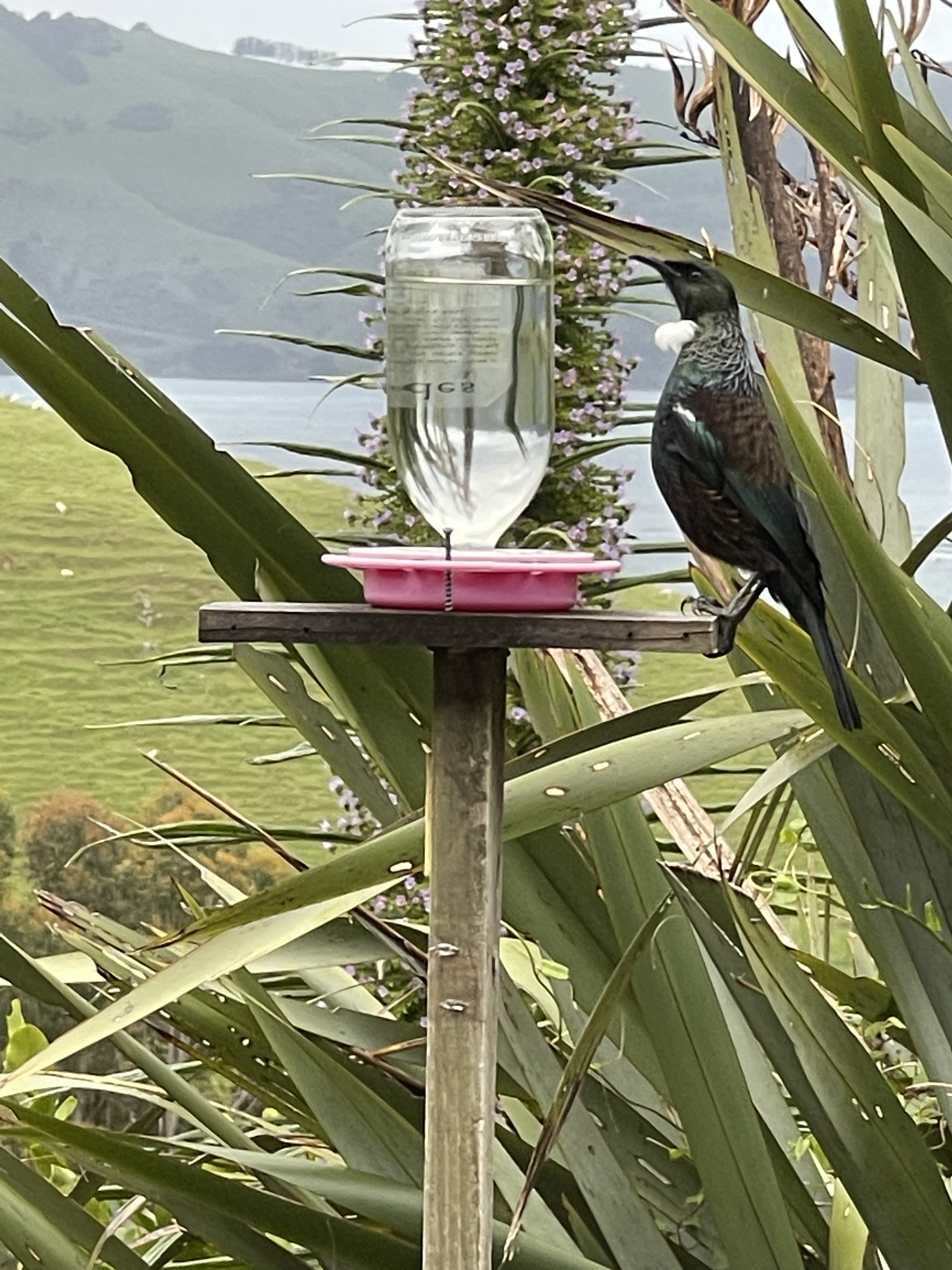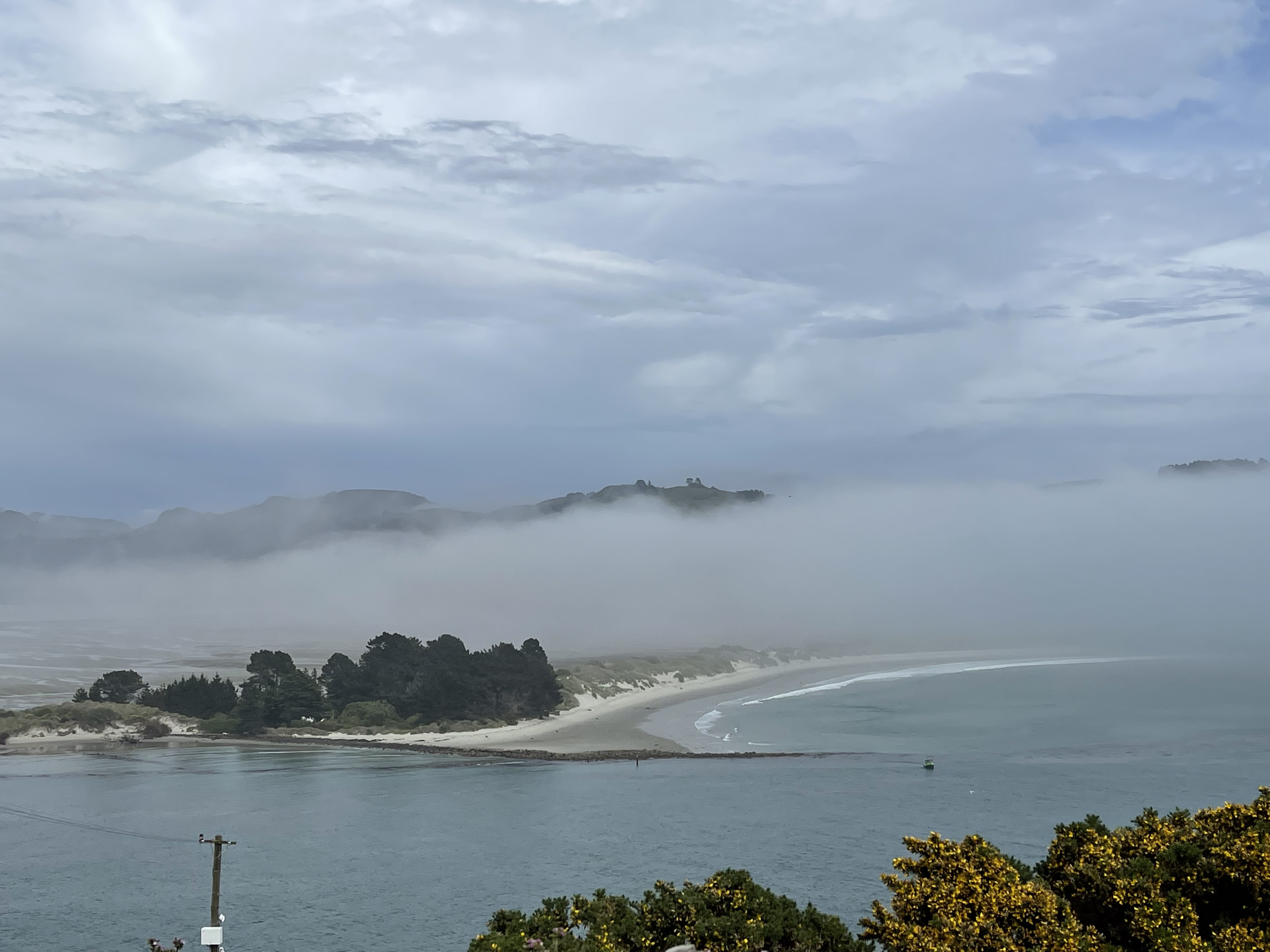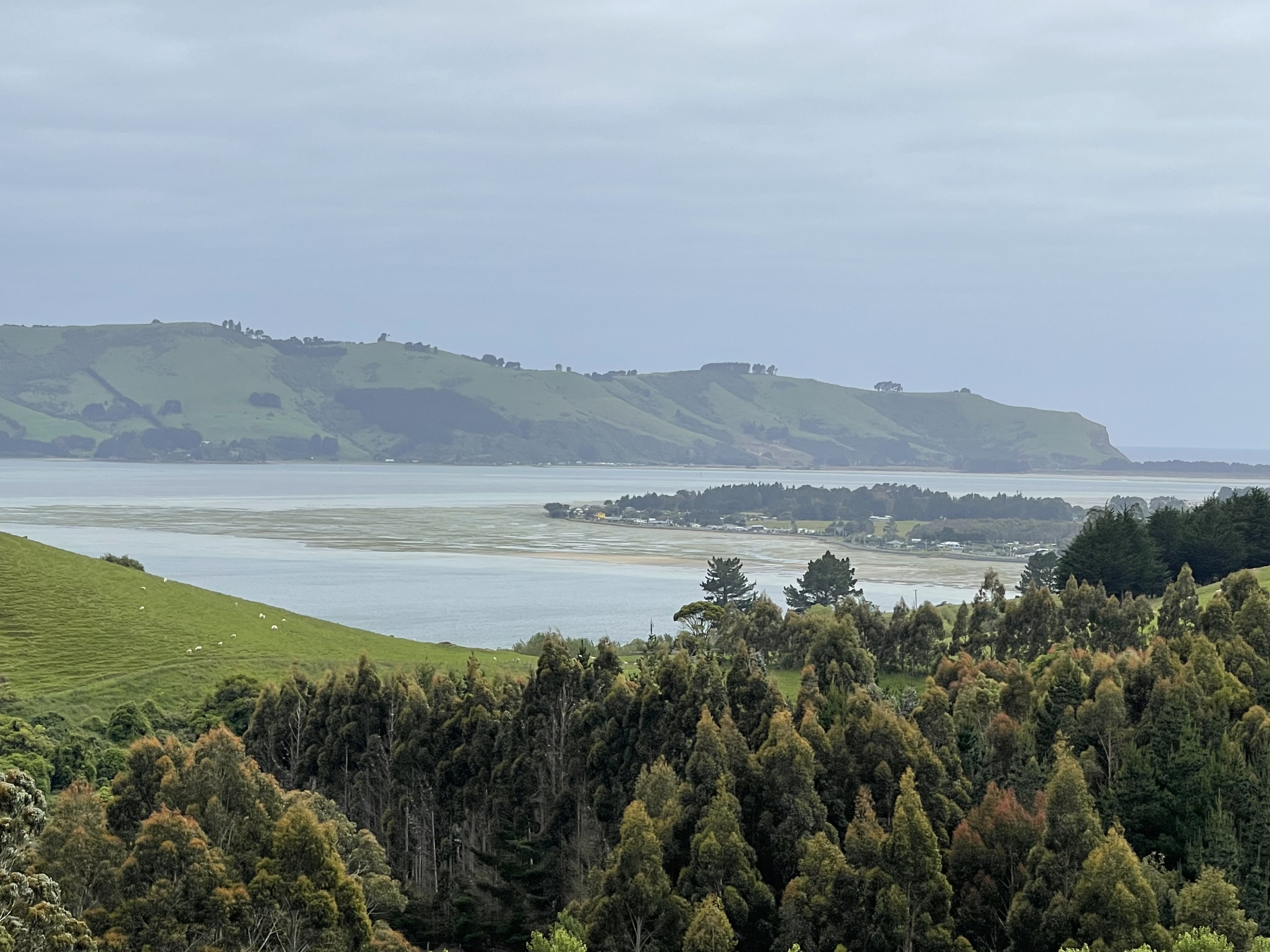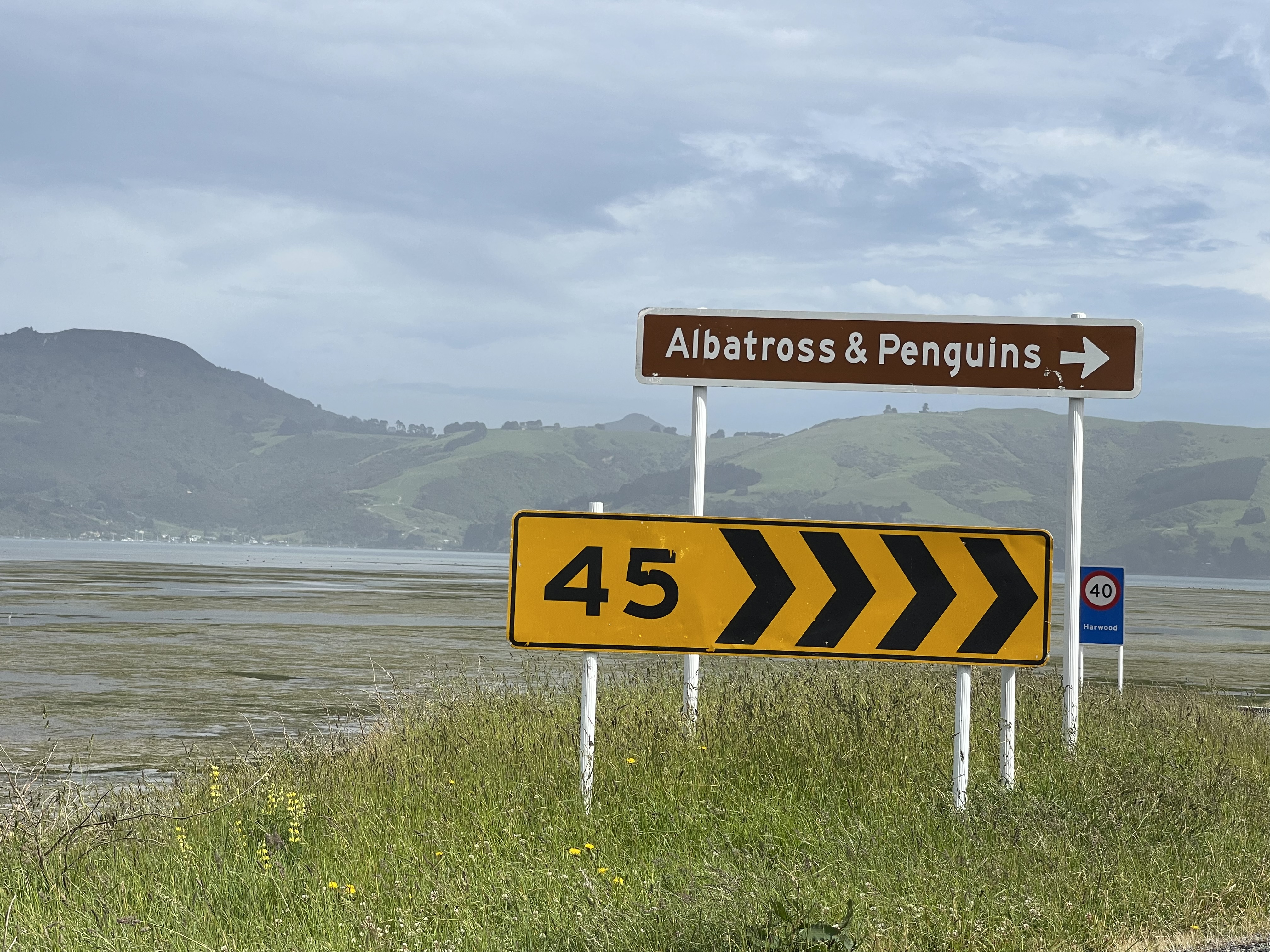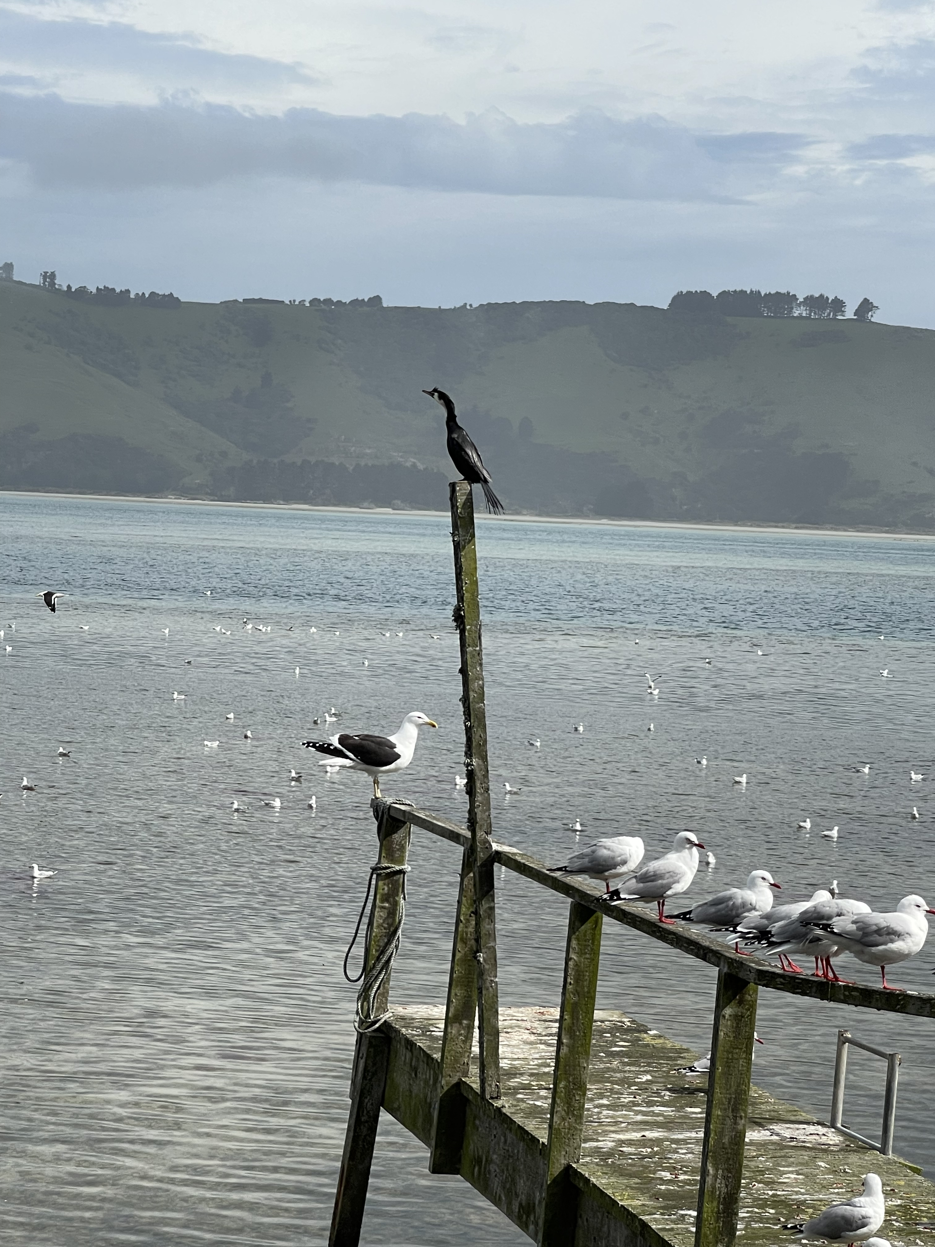 Nous arrivons en fin de journée sous un timide soleil et avec un fort vent. Les jours se suivent et ne se ressemblent pas. Les logements non plus… Si nous disposons de tout ce dont nous avons besoin, je regrette la décoration et les aménagements du précédent. Néanmoins, la vue, totalement différente de celle des fjords, est très belle. Nous logeons sur la péninsule d’Otago, complètement à l’écart de la ville, véritable sanctuaire pour les oiseaux, les phoques et lions de mer.