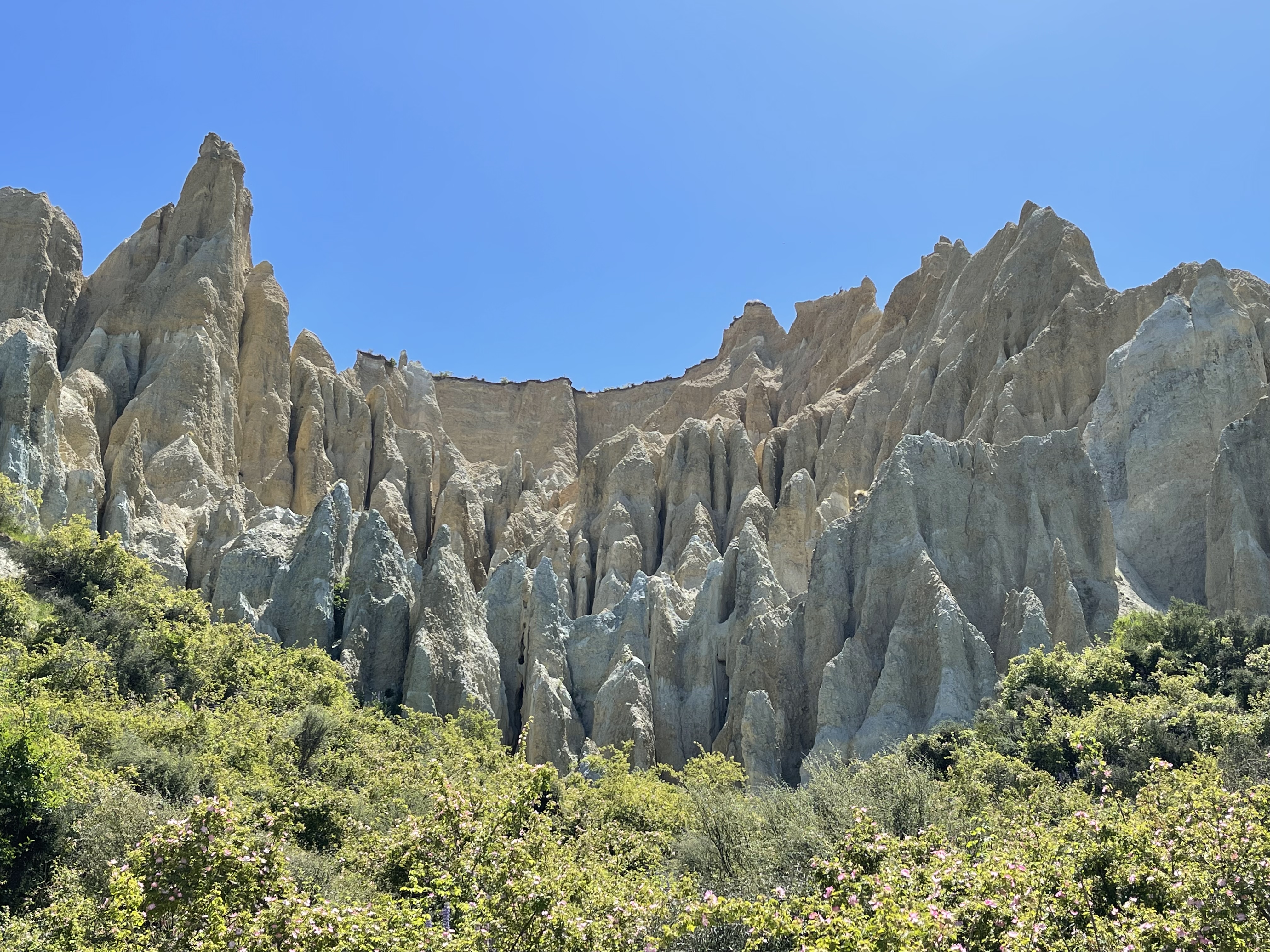 Dernière étape avant notre retour sur l’île du Nord. On a laissé du grand spectacle pour la fin. Mais tout d’abord…la route car il y en a des choses à voir en chemin. Entre vignobles (on fait arrêt très sympa et on prend un verre dans un endroit idyllique), barrages hydroéléctriques avec leurs lacs dans de nombreuses nuances de bleu et des falaises en argile spectaculaires sous un ciel bleu cobalt!