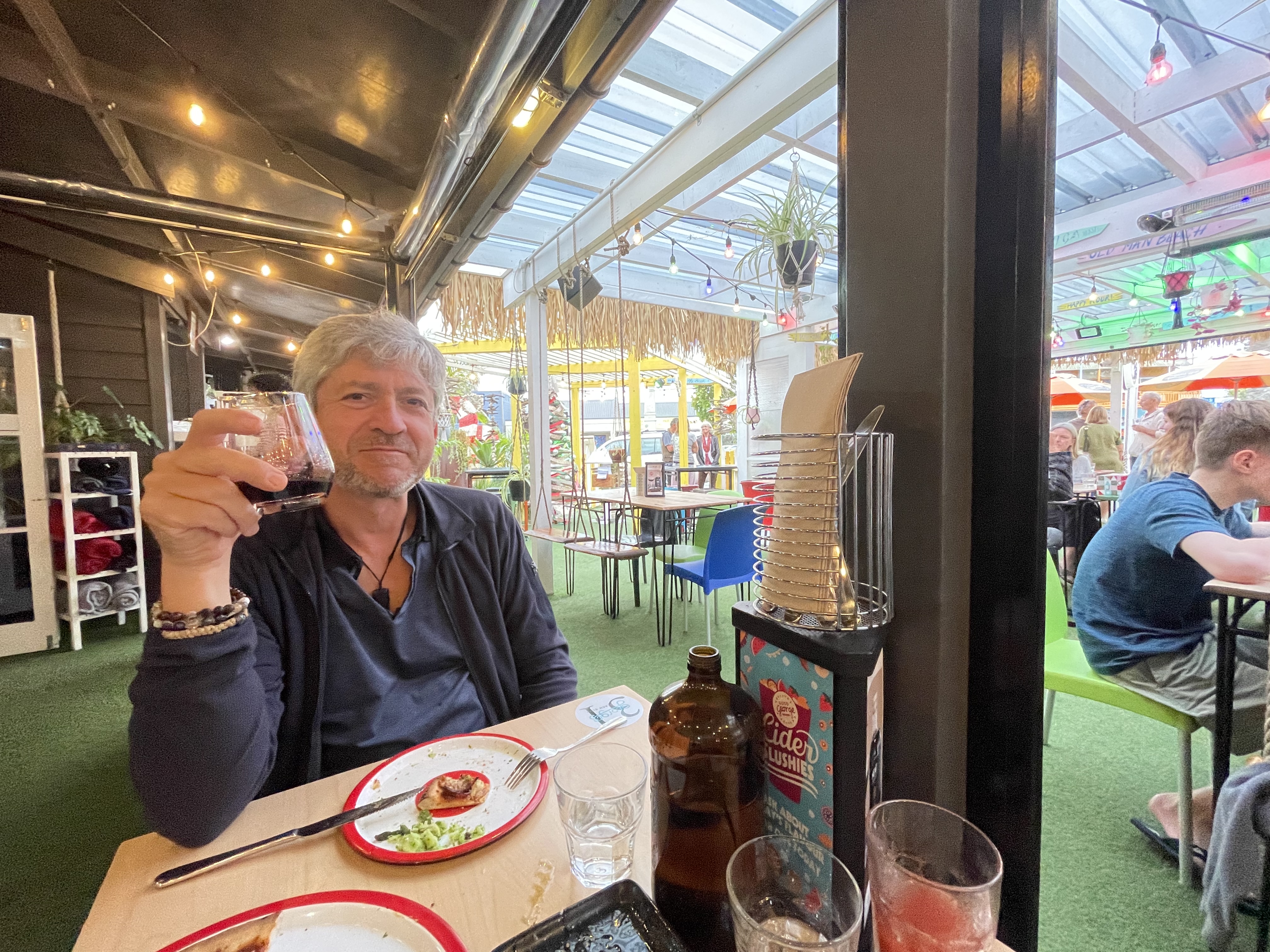 On loge dans les collines dans une jolie maison avec vue lointaine sur les falaises et la mer. C’est la fin du séjour, on prend notre petit déjeuner dans un bistro sympa au centre ville où travaille une jeune Française qui nous voit revenir tous les matins avec surprise.