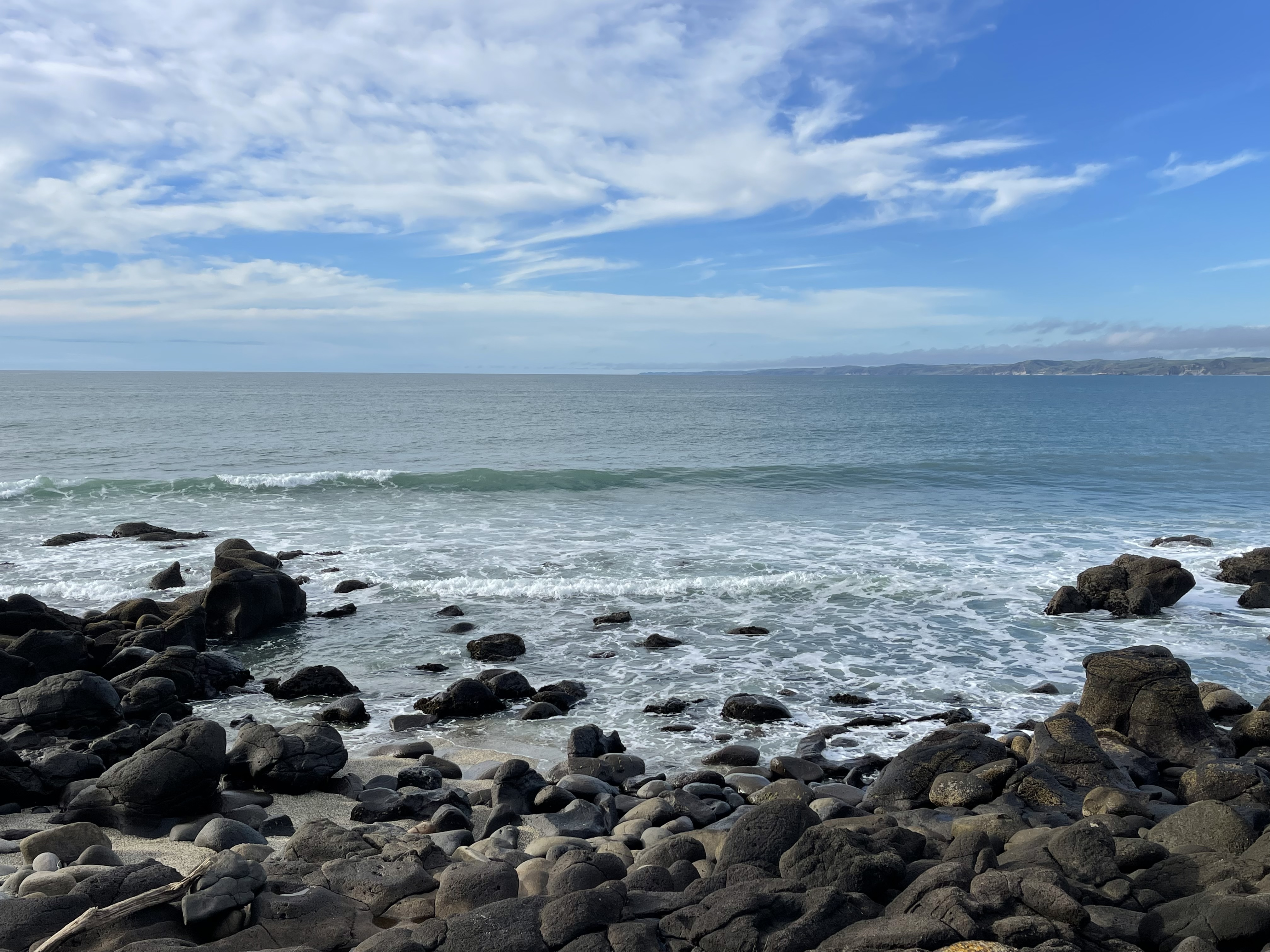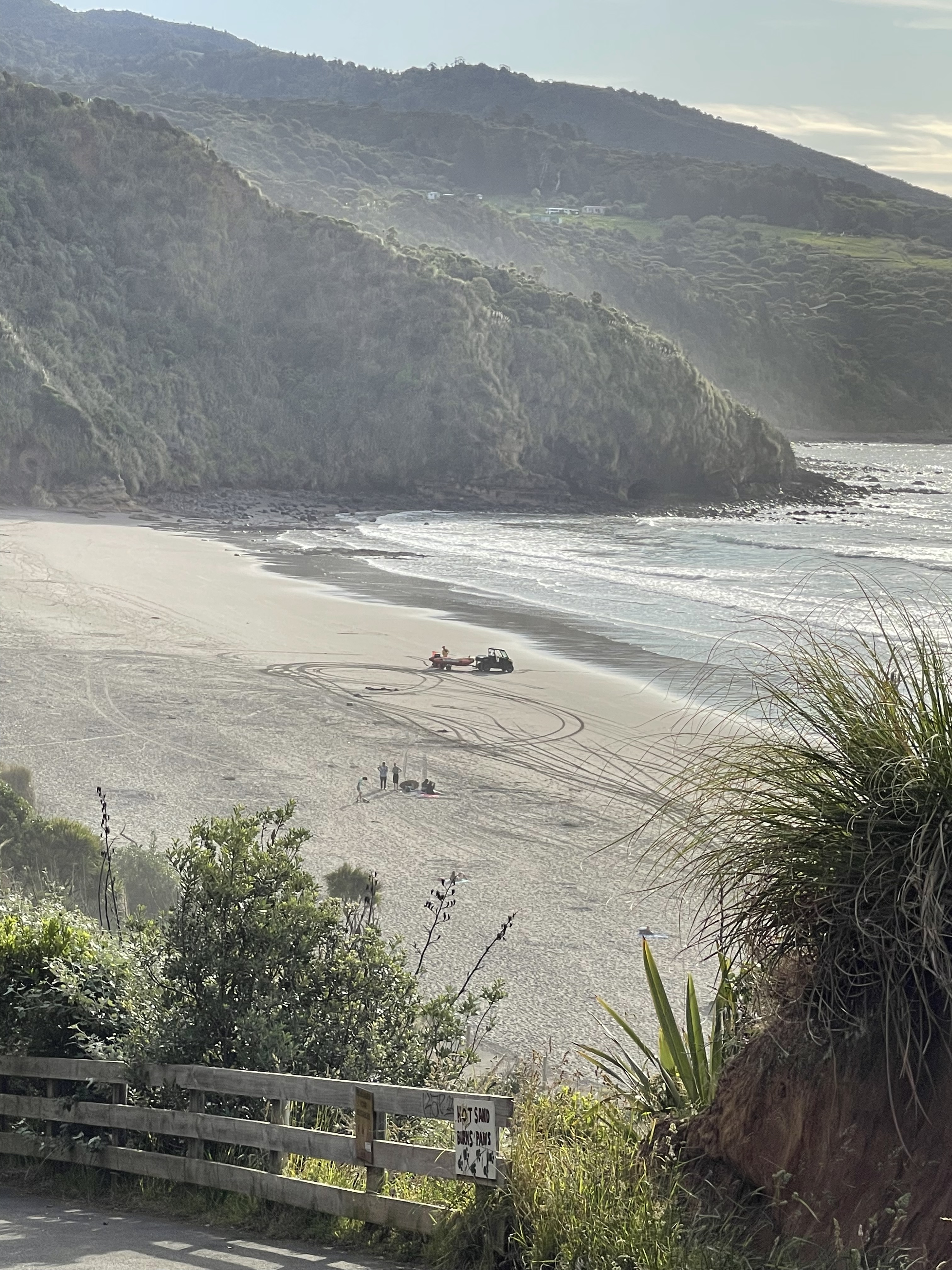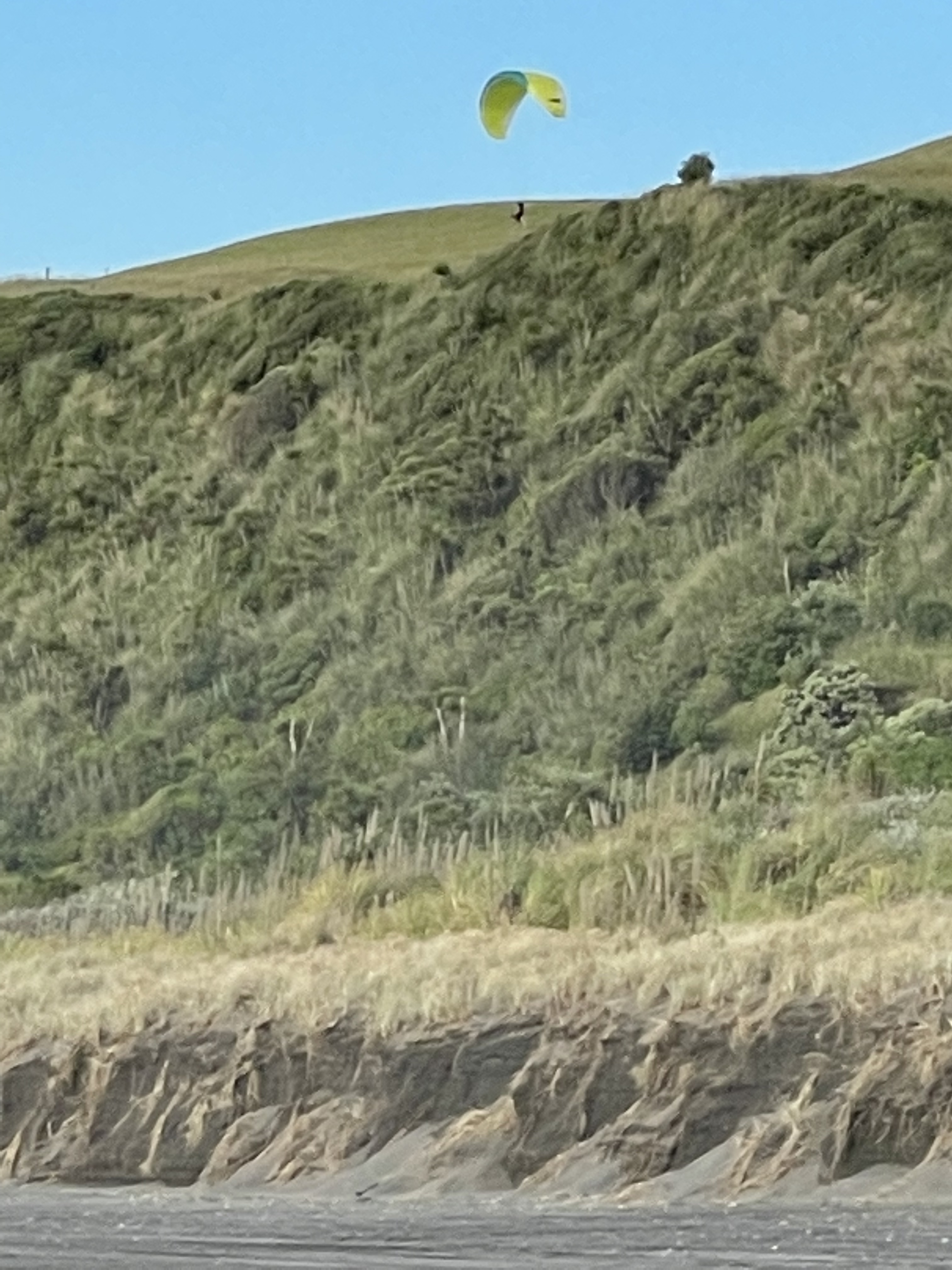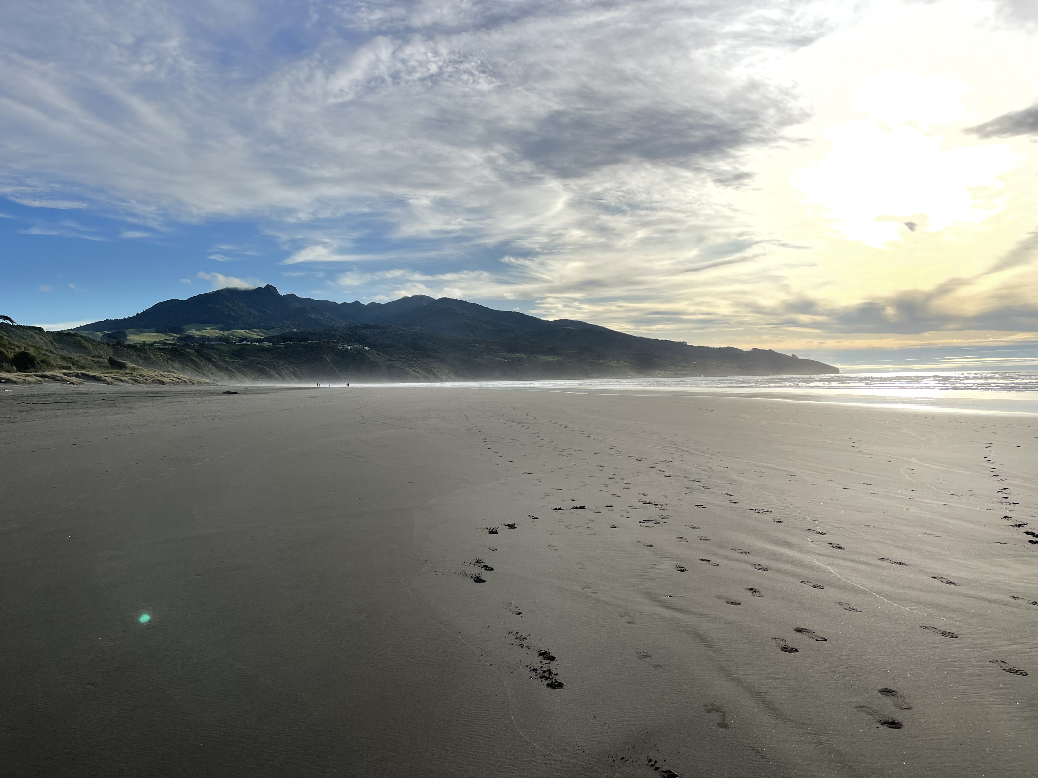 Après une longue journée de voyage (3 bonnes heures de route vers Christchurch, un avion vers Auckland puis encore 2 bonne heures de route), nous découvrons notre dernière étape: Raglan. Petite station balnéaire de 4000 habitants (sa population est multipliée par 5 en été), très mignonne, à 50 km à l’ouest d’Hamilton sur la cote ouest dans le district de Waikato. Paradis des surfeurs, la ville s’étend autour de bras de mer et d’une très grande baie. Des plages de galets et de sables s’égrènent au fil du littoral. Ce seront la baie des Baleines, la baie de Manu et surtout la magnifique plage de Ngarunui. Plage de sable de plus 3km de long, à pente très douce. Superbe. On y fait une longue promenade et j’y reviens le lendemain pour un jogging matinal. Un vrai régal.