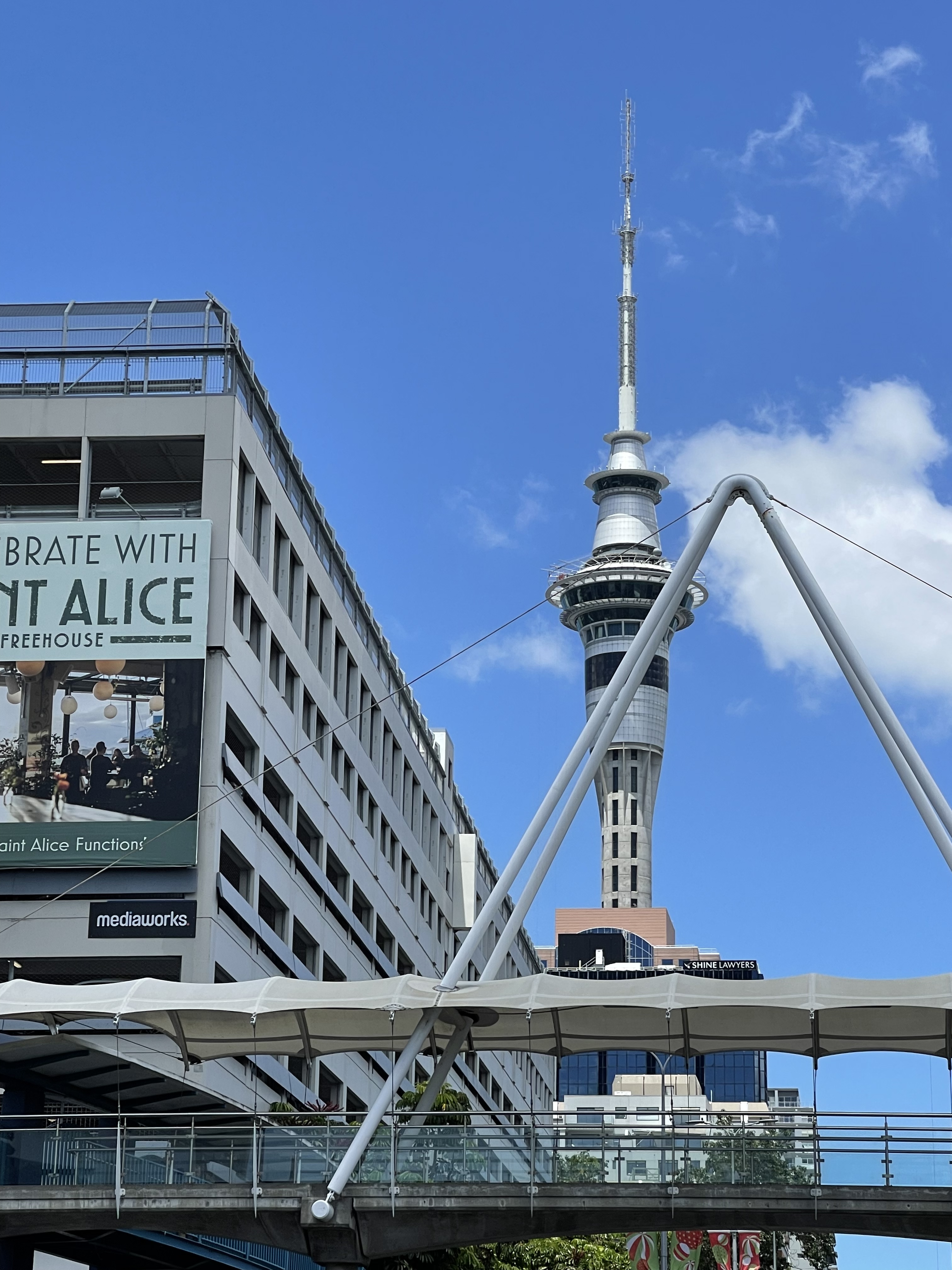 Nous voici à Auckland pour notre dernière nuit. Mais non car notre vol est retardé de 10h, on nous propose un vol de lendemain. Ce sera donc une journée de bonus dans cette ville sous le soleil avec 25 degrés et les déco de Noël.